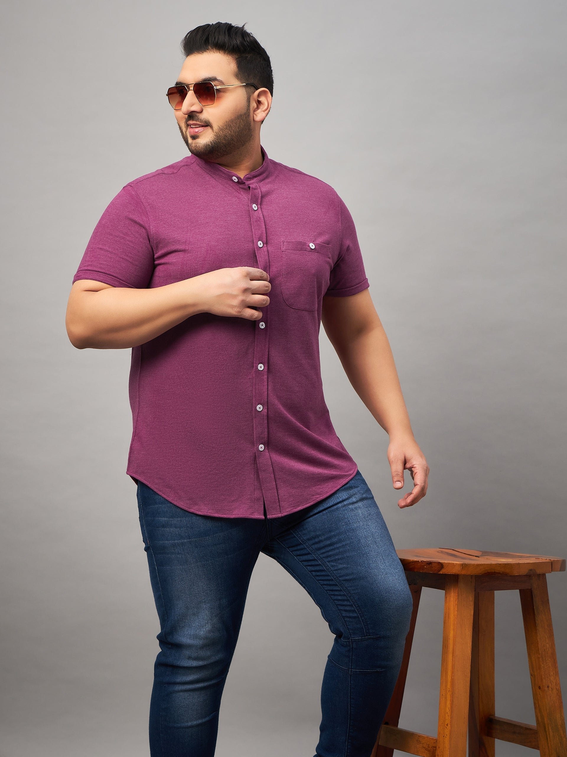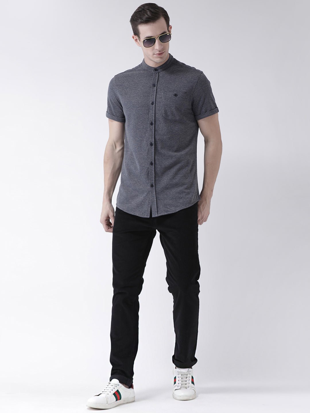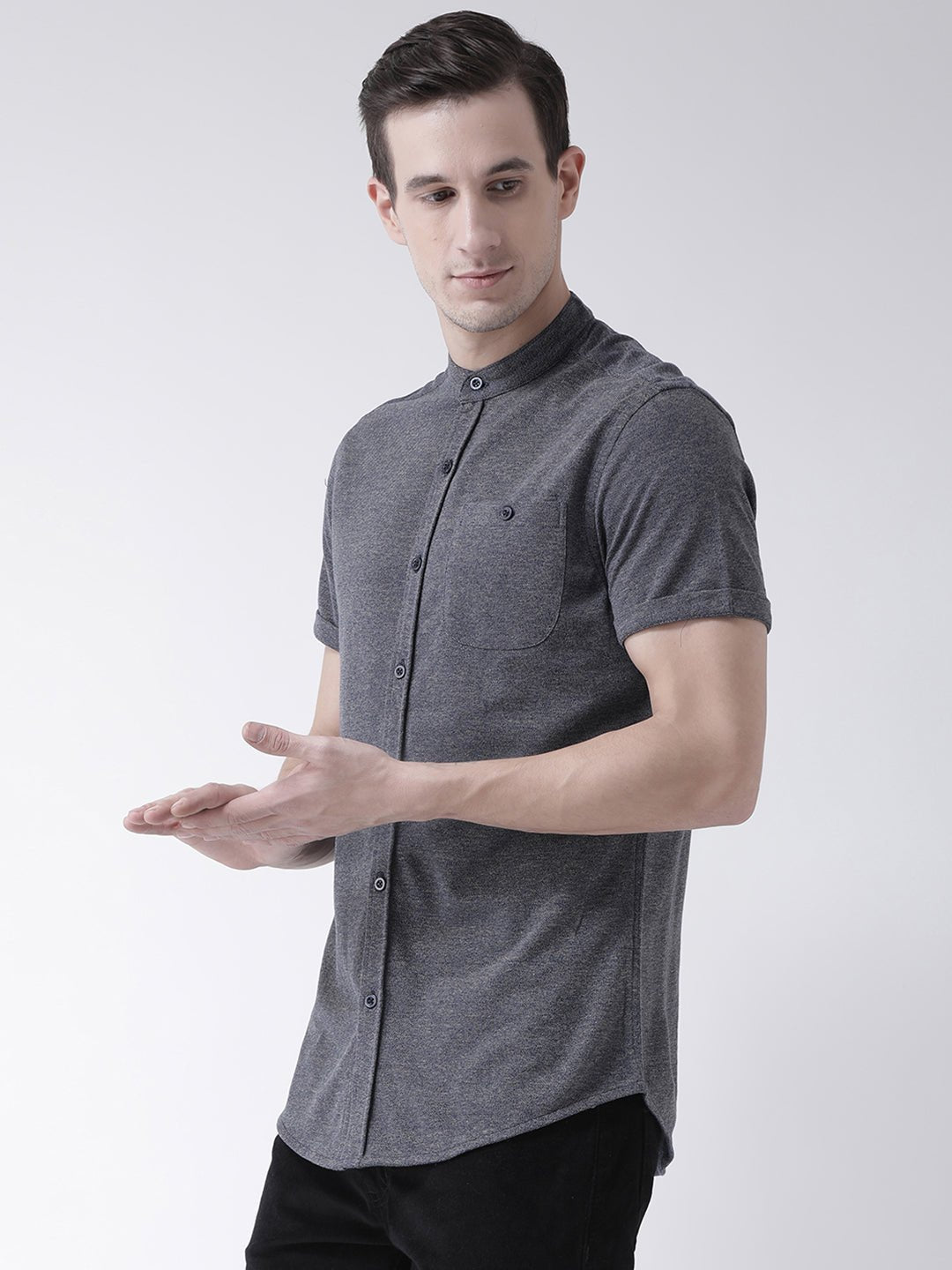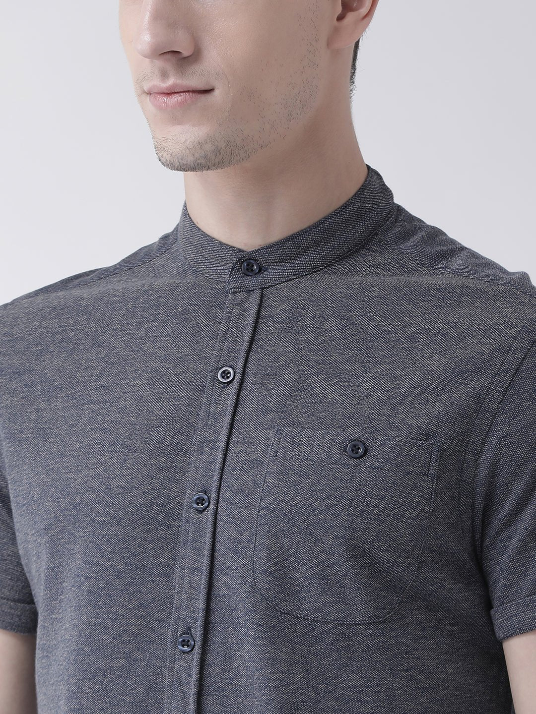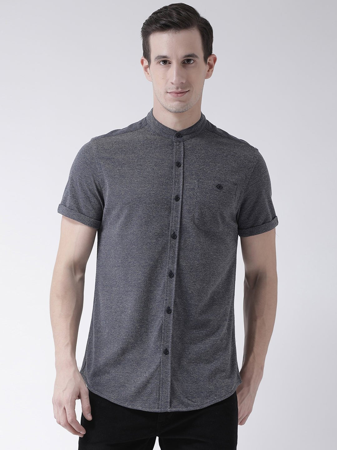 Grey Mandarin Knitted Shirt Has Chest Pocket Sm69 1940