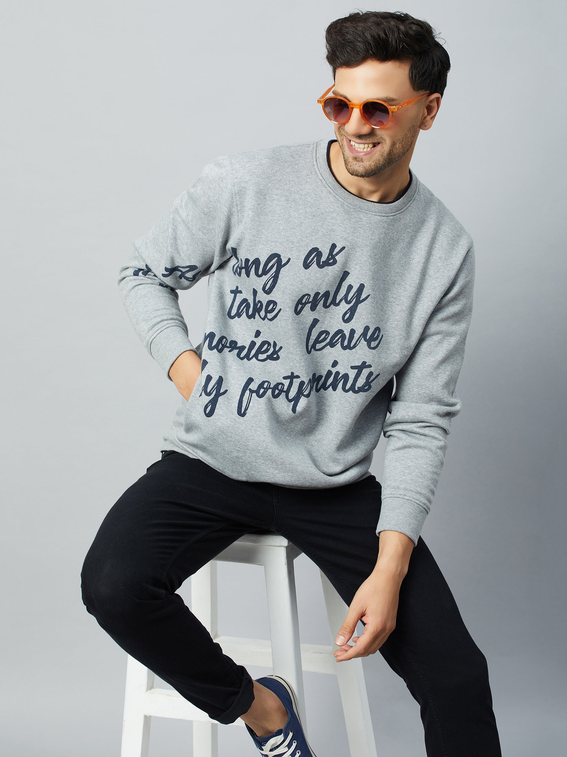 Light Grey Printed Full Sleeve Round Neck Sweatshirt 7453