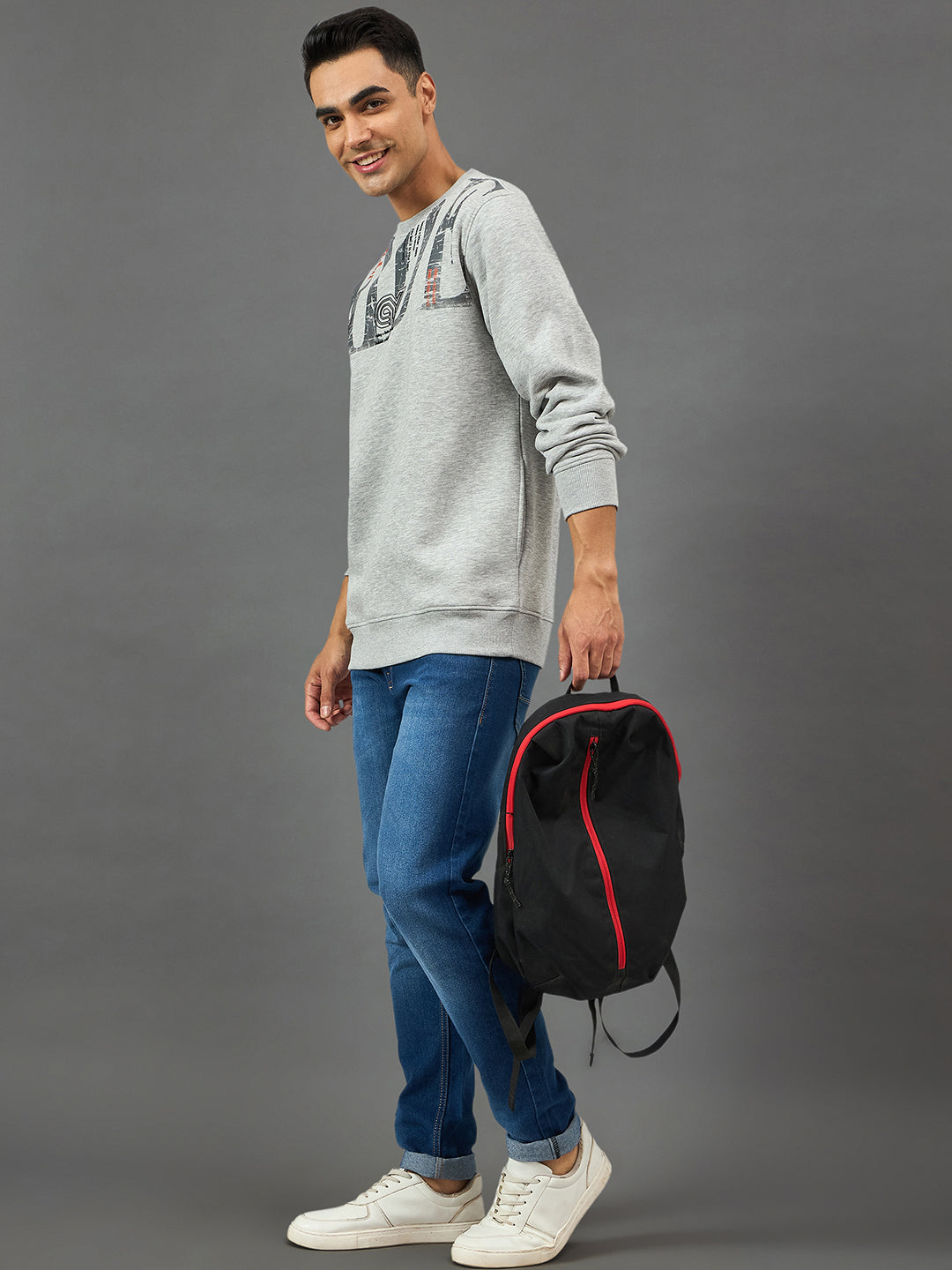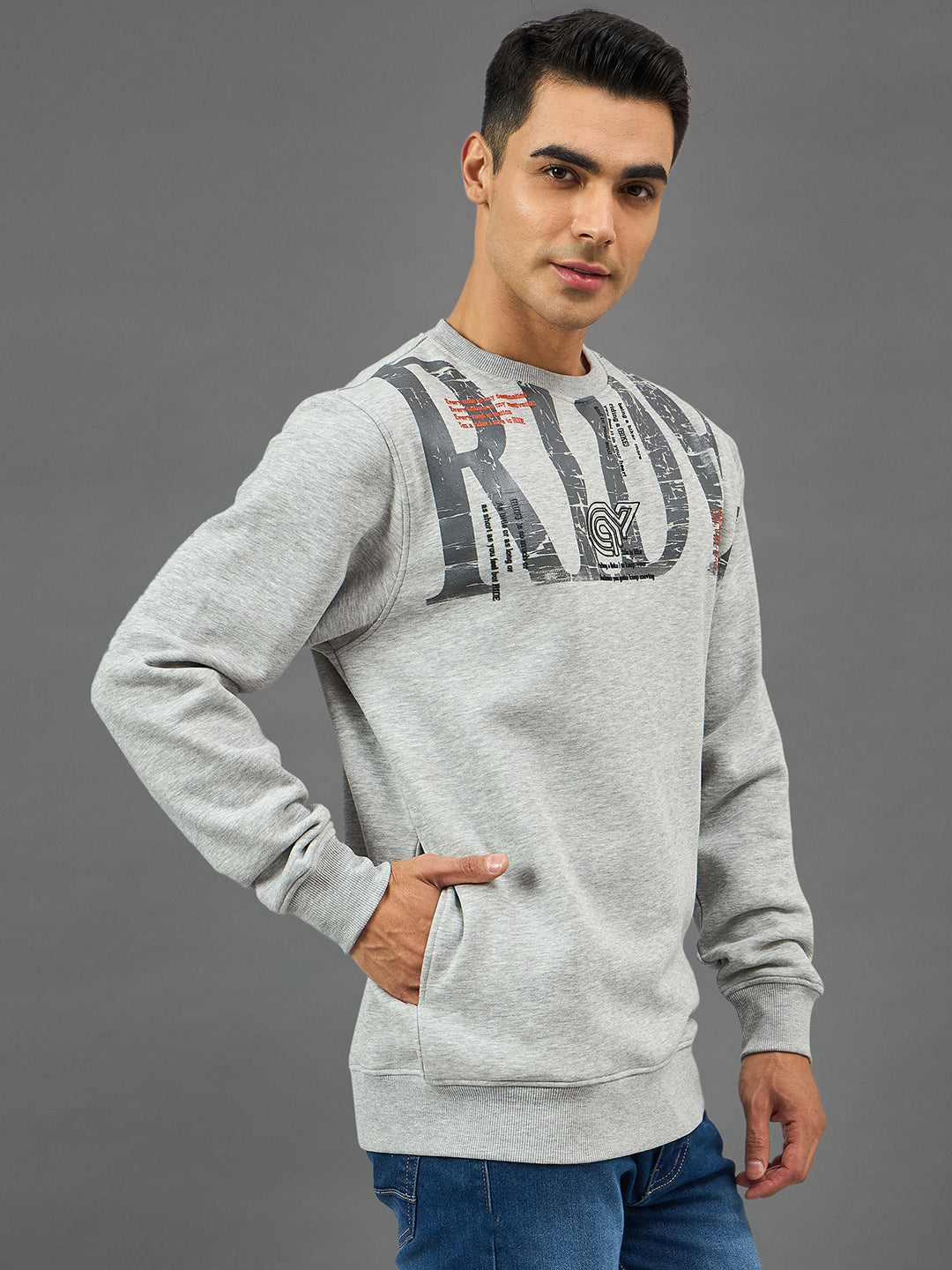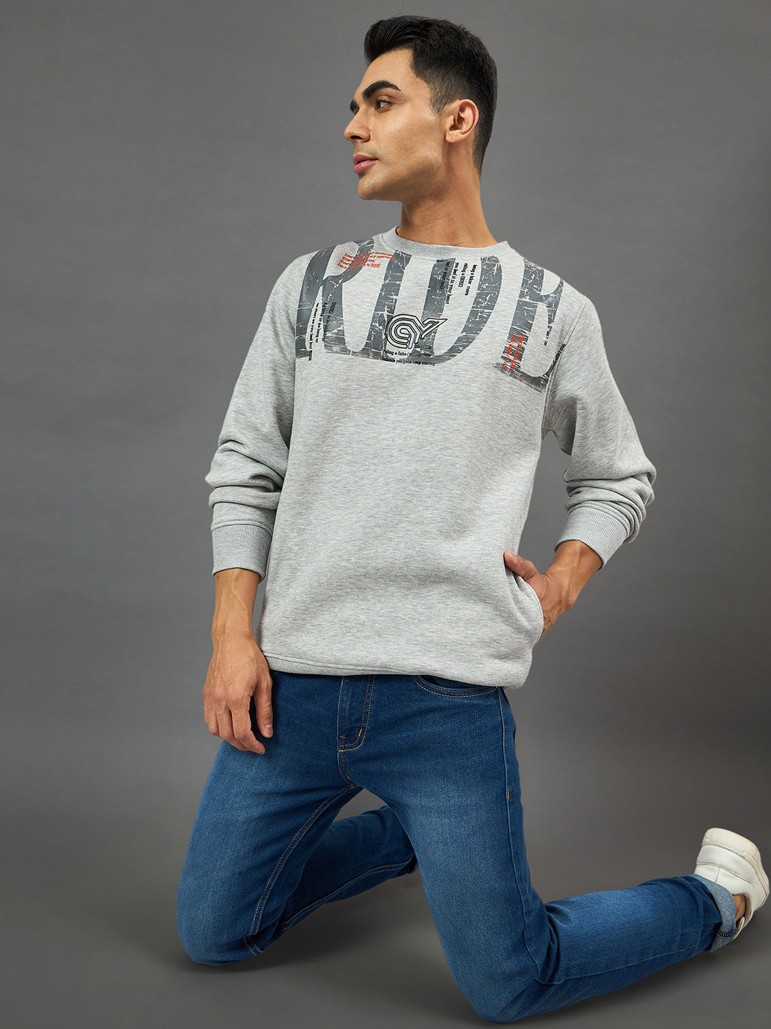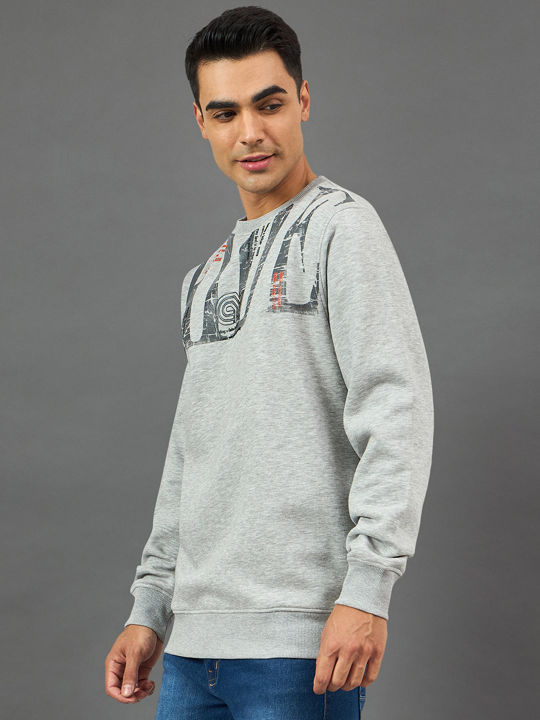 Light Grey Printed Full Sleeve Round Neck Sweatshirt 7453