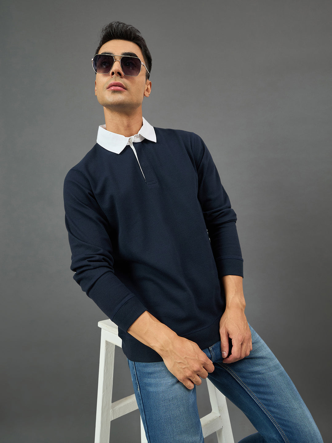 Navy Printed Full Sleeve Round Neck Sweatshirt 8084