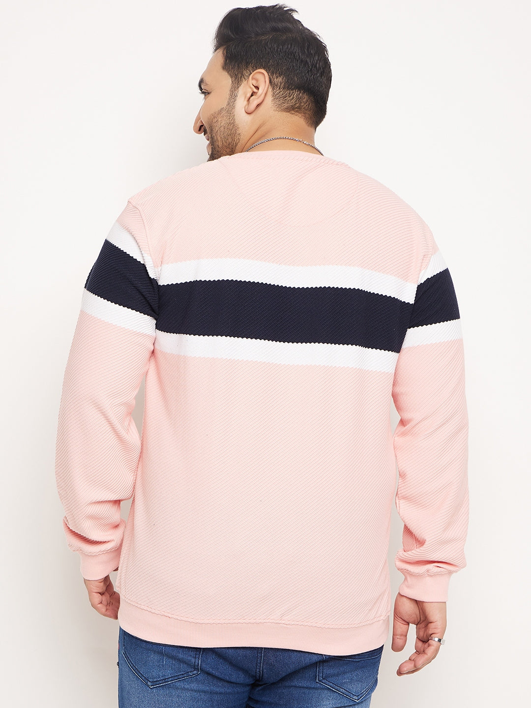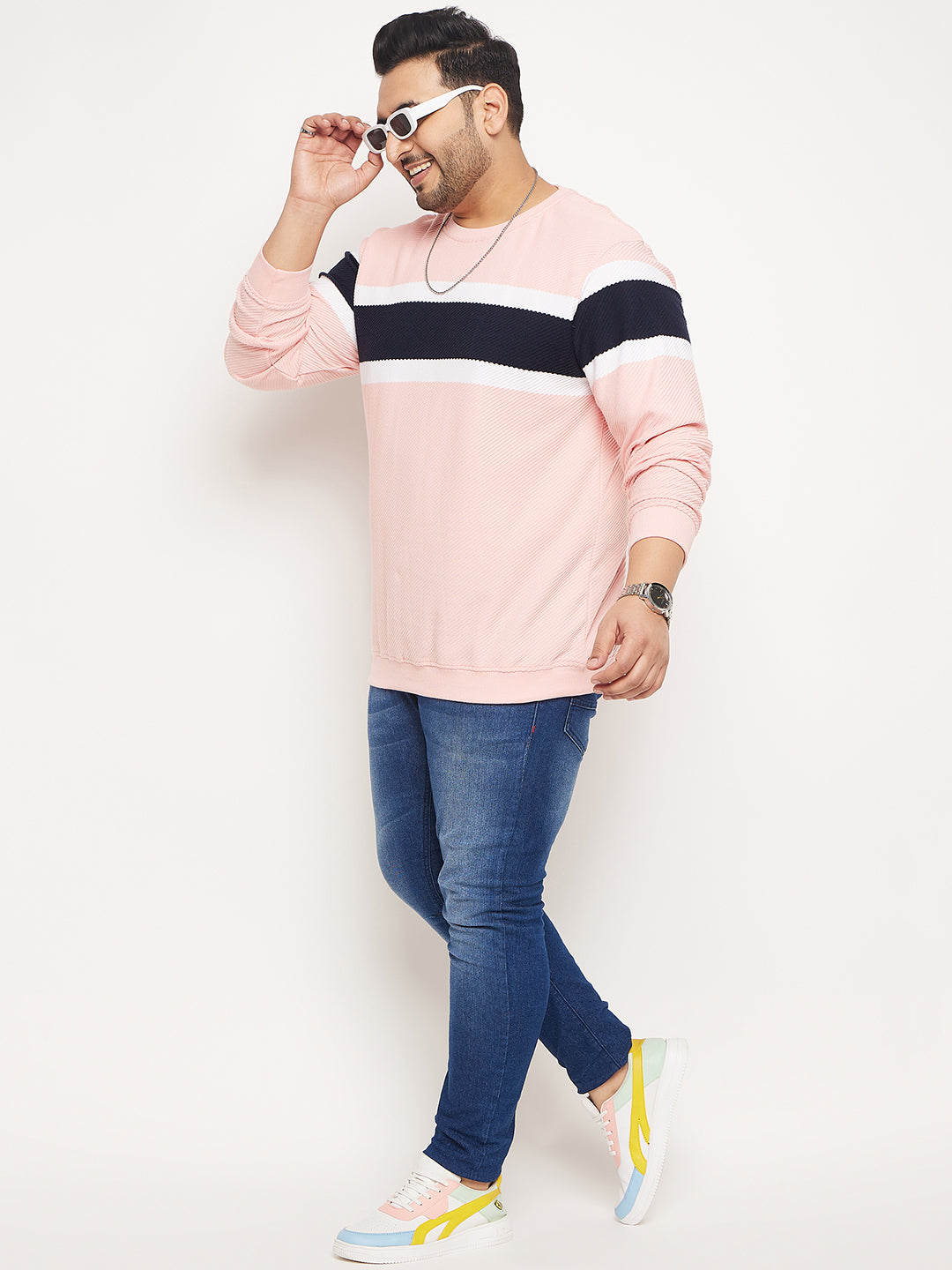 Light Pink Striped Full Sleeve Round Neck Plus Size Sweatshirt 4961