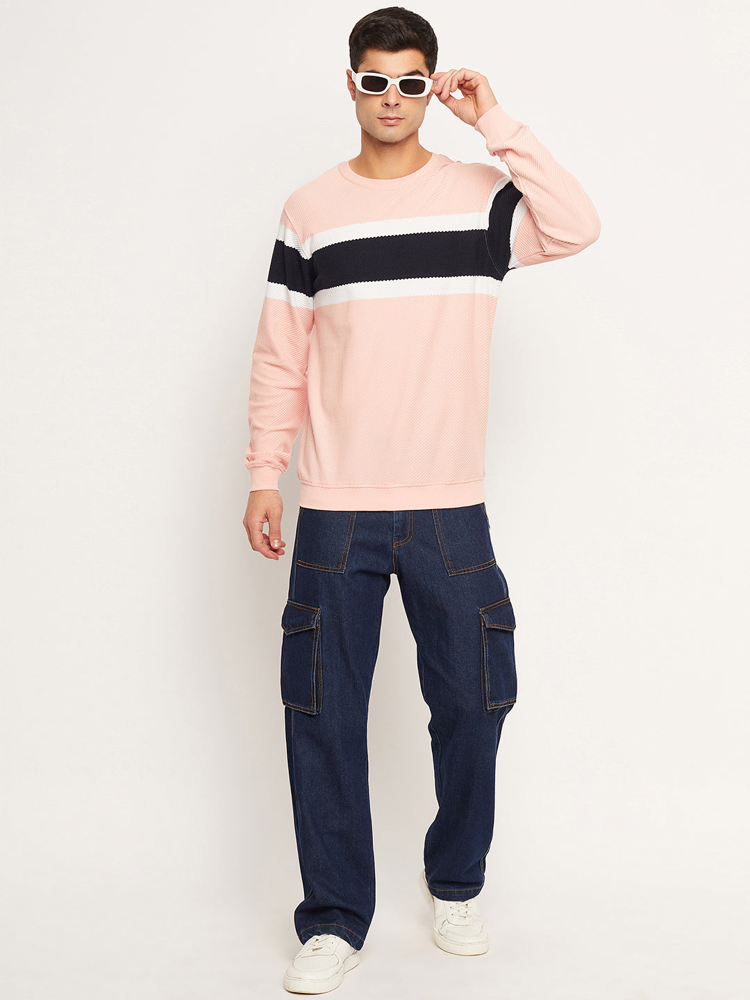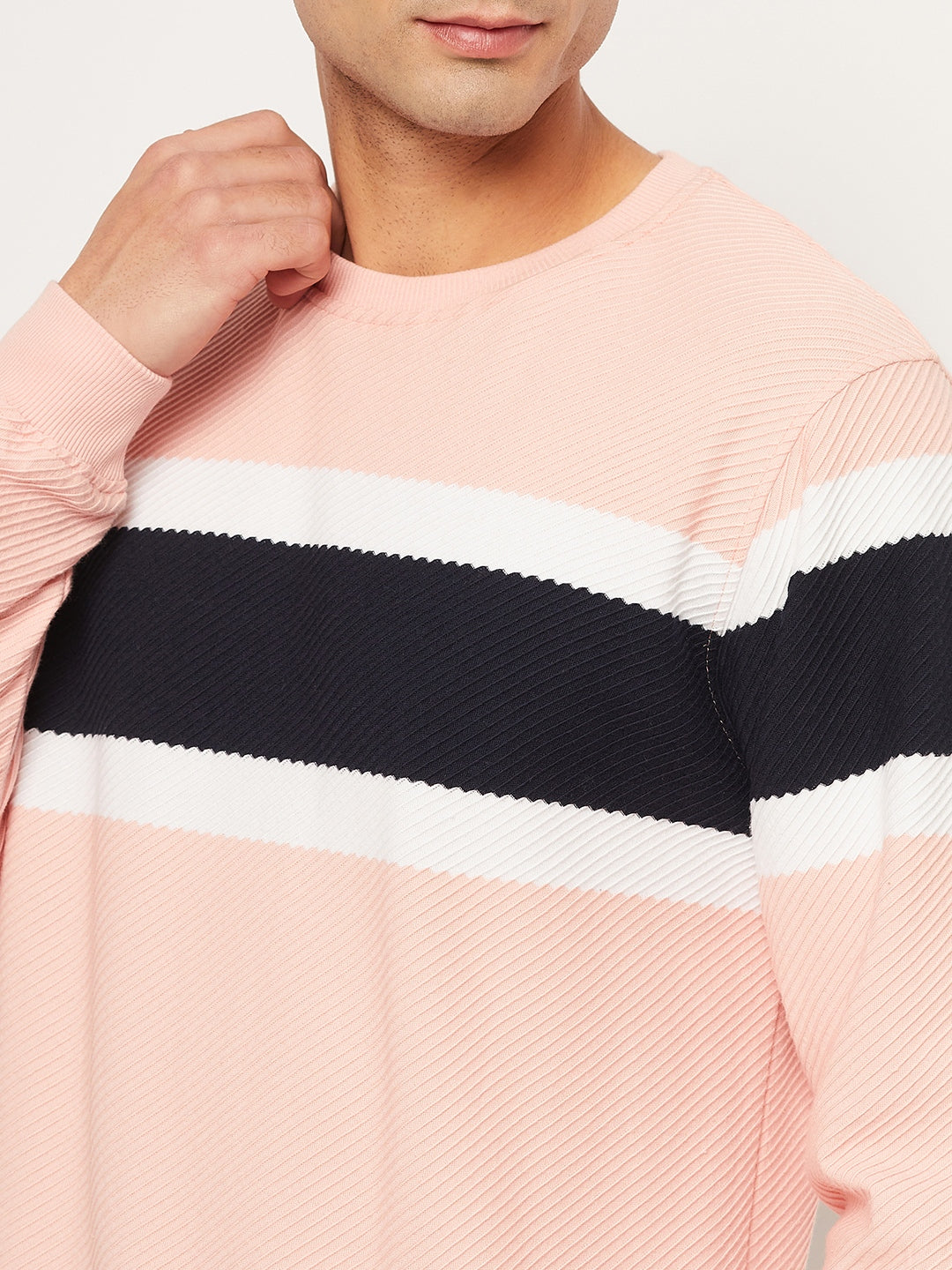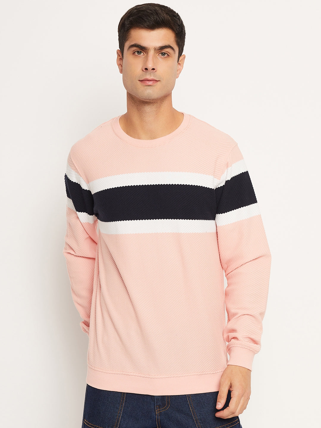 Light Pink Striped Full Sleeve Round Neck Sweatshirt 7998