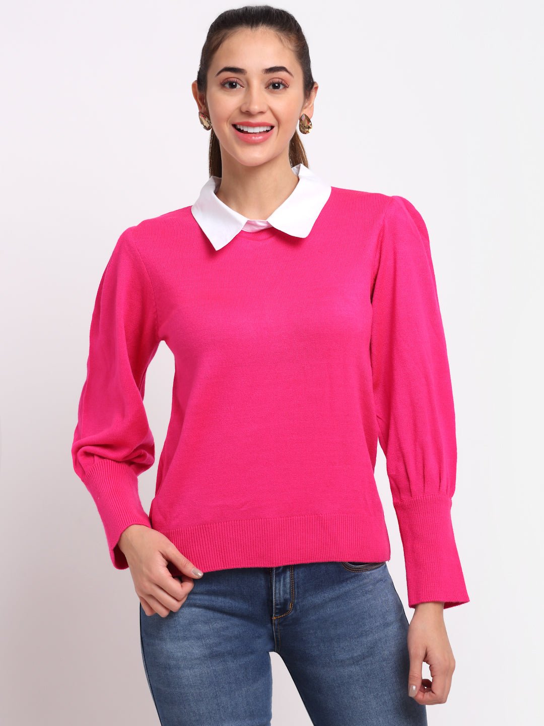 Pink Solid Polo Neck Sweater 7243
