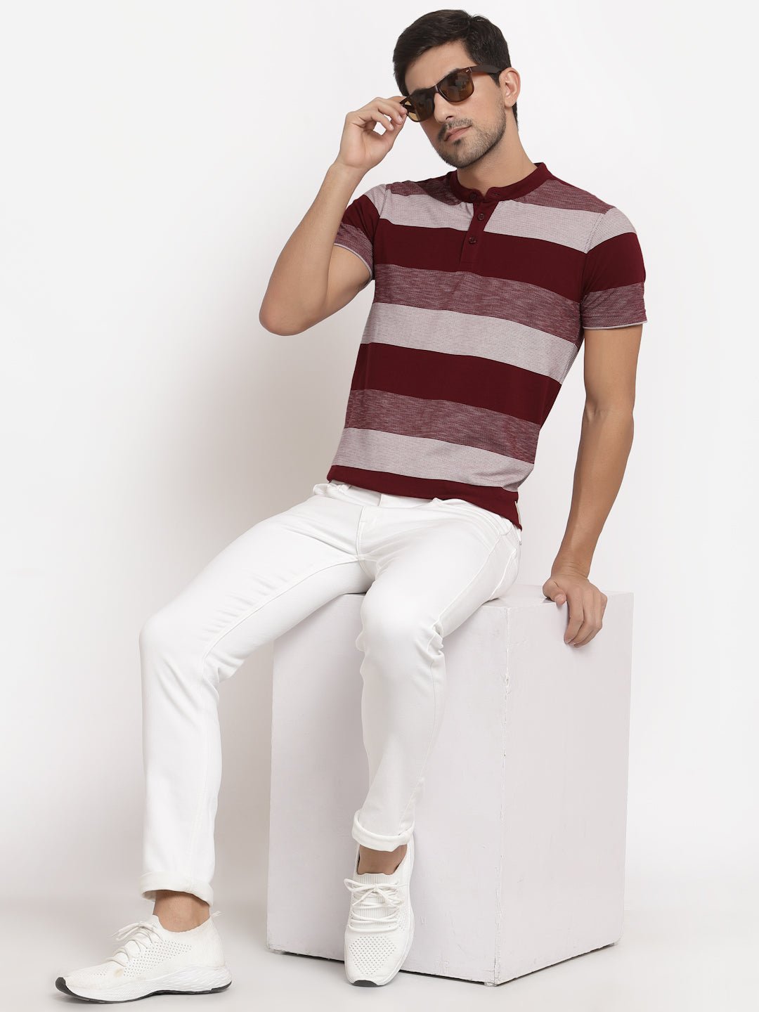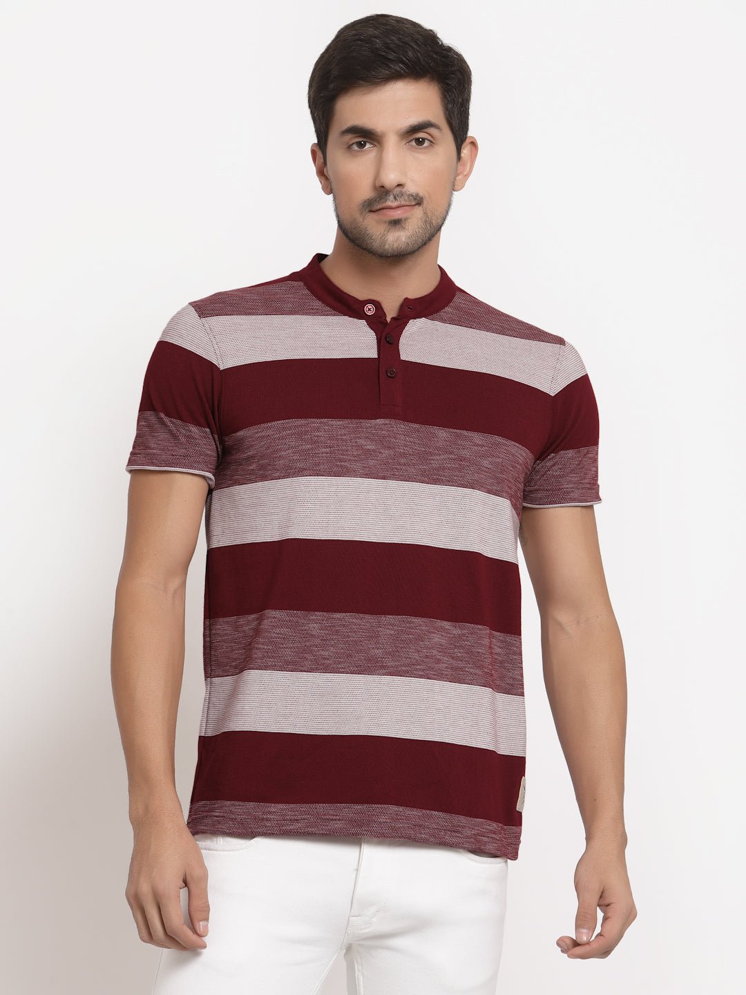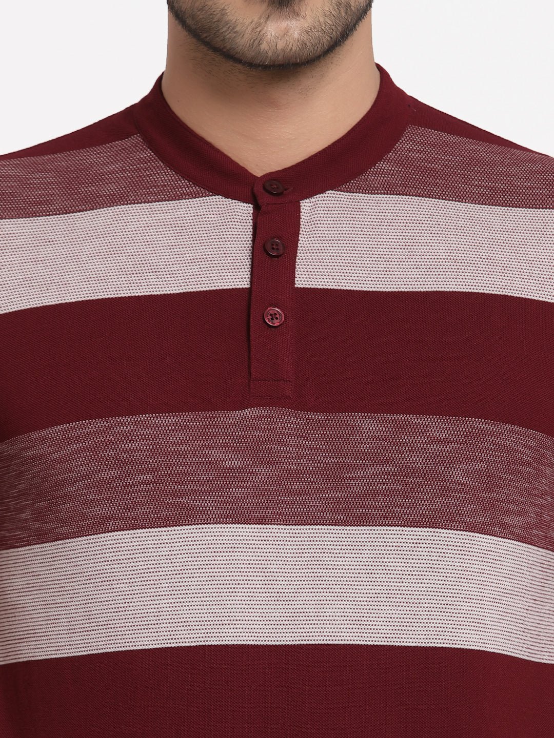 Wine Solid Half Sleeve Polo Neck T-Shirt 6836