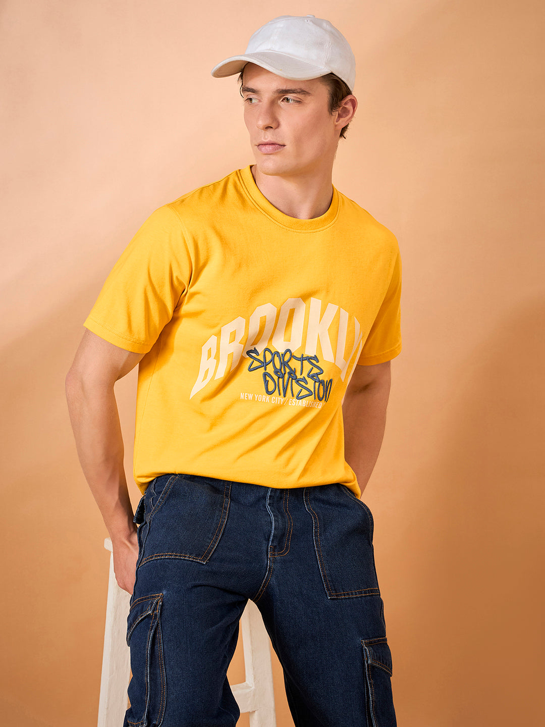 Men Yellow Print Regular Fit T-Shirt 2032
