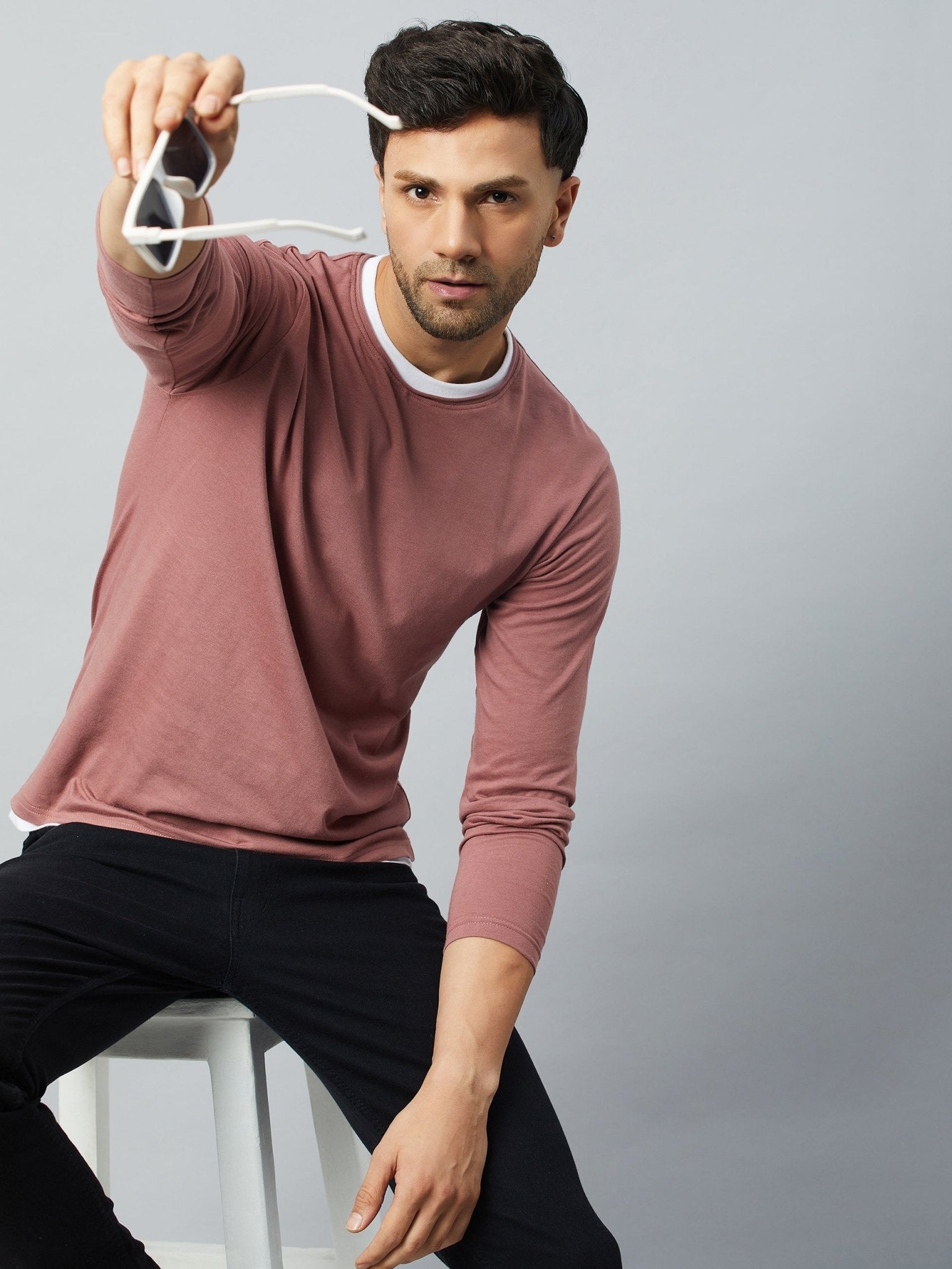 Men Solid Mocha Mouse Round Neck Oversized T Shirt