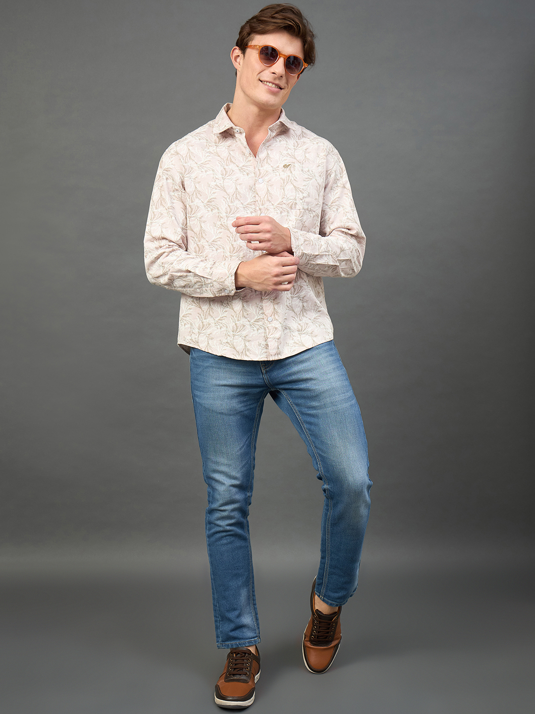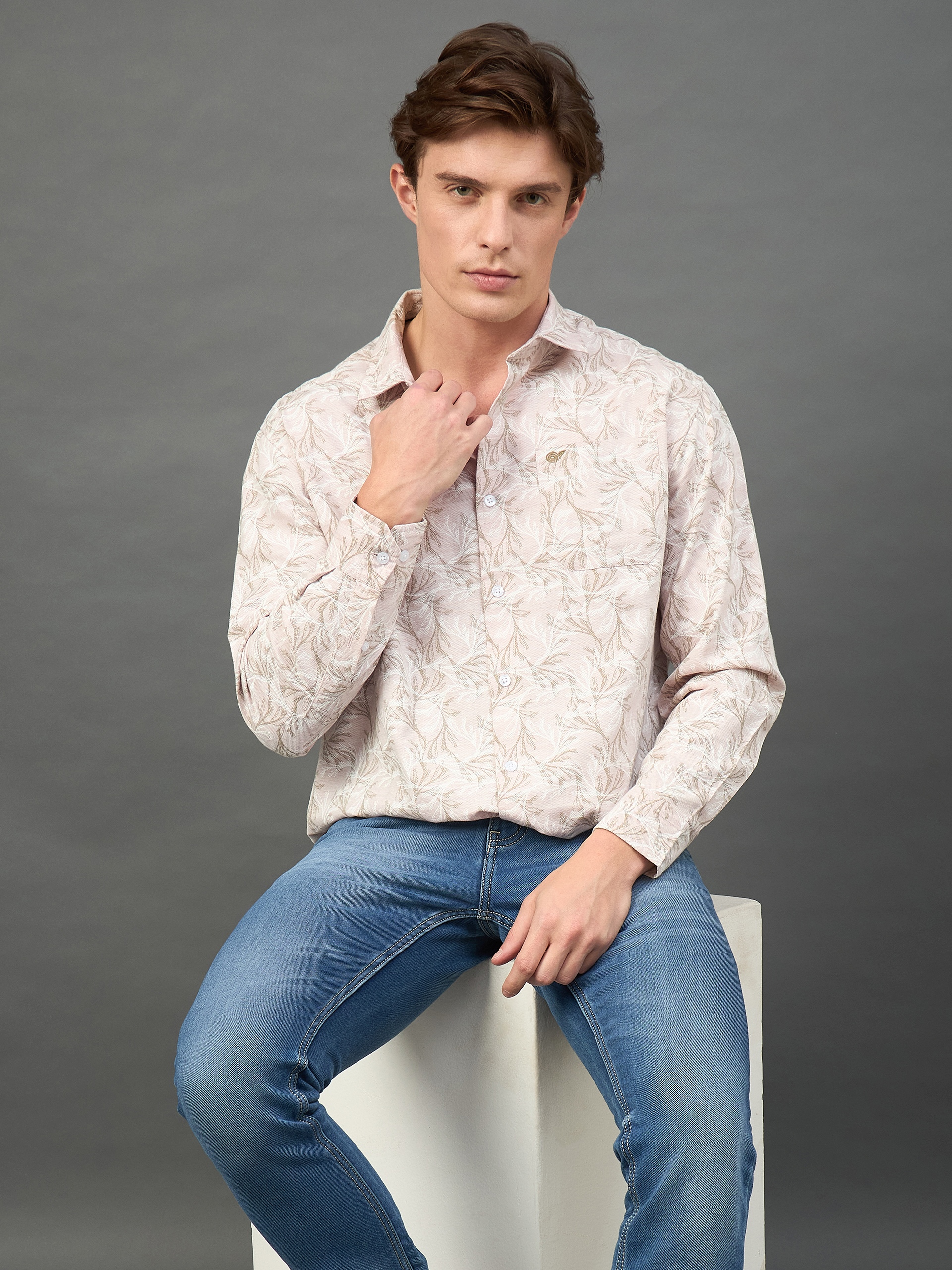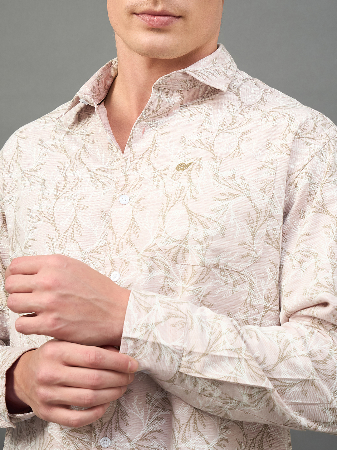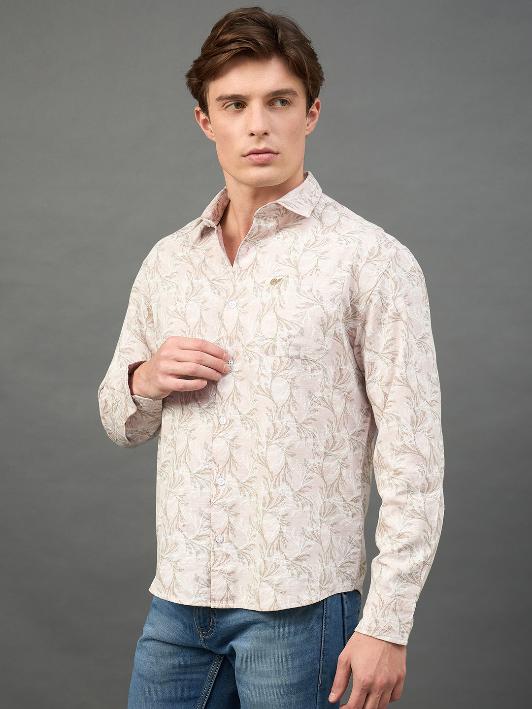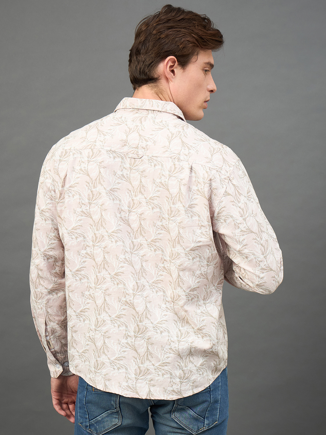 Men Floral Printed Peach Spread Collar Casual Shirt