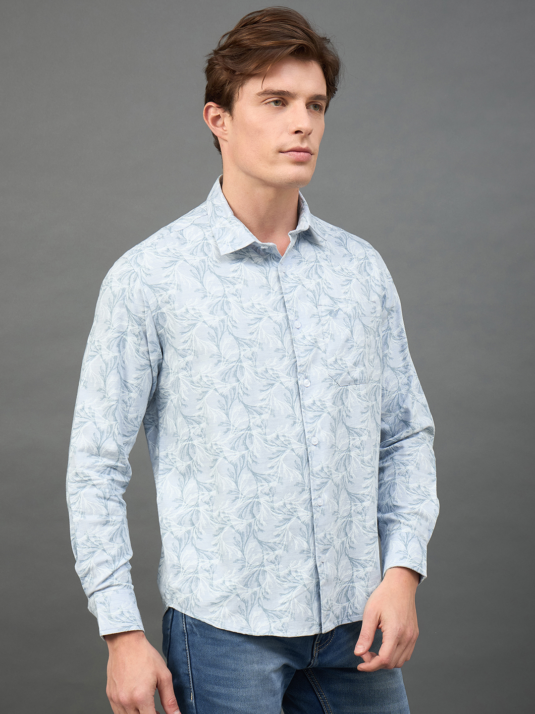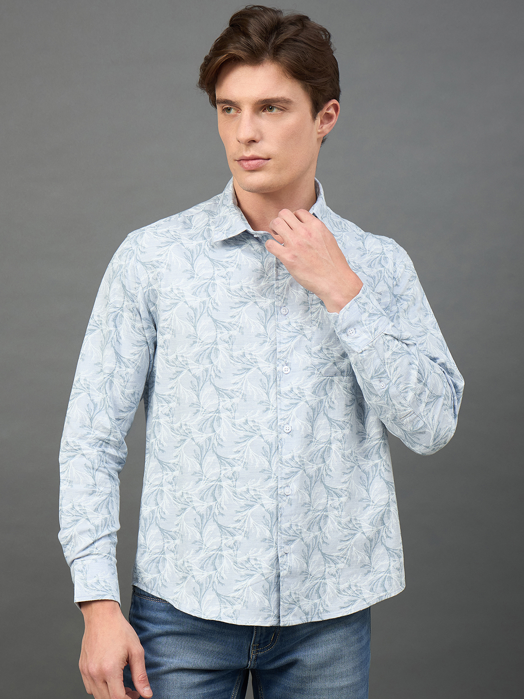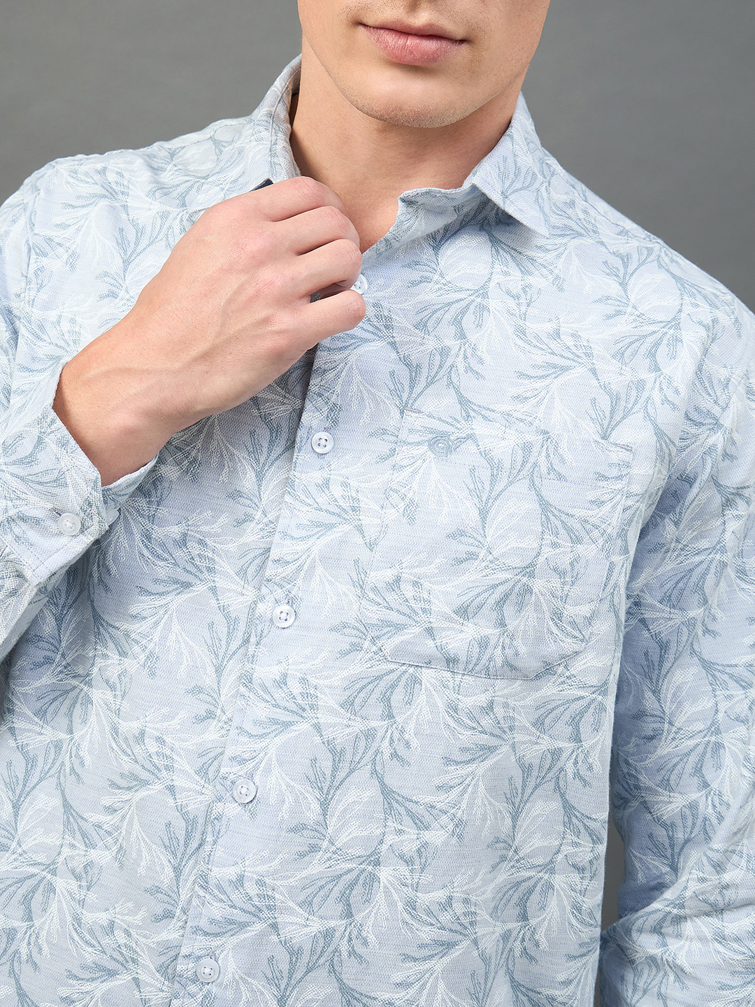 Men Slim Fit Light Blue Collar Casual Shirt