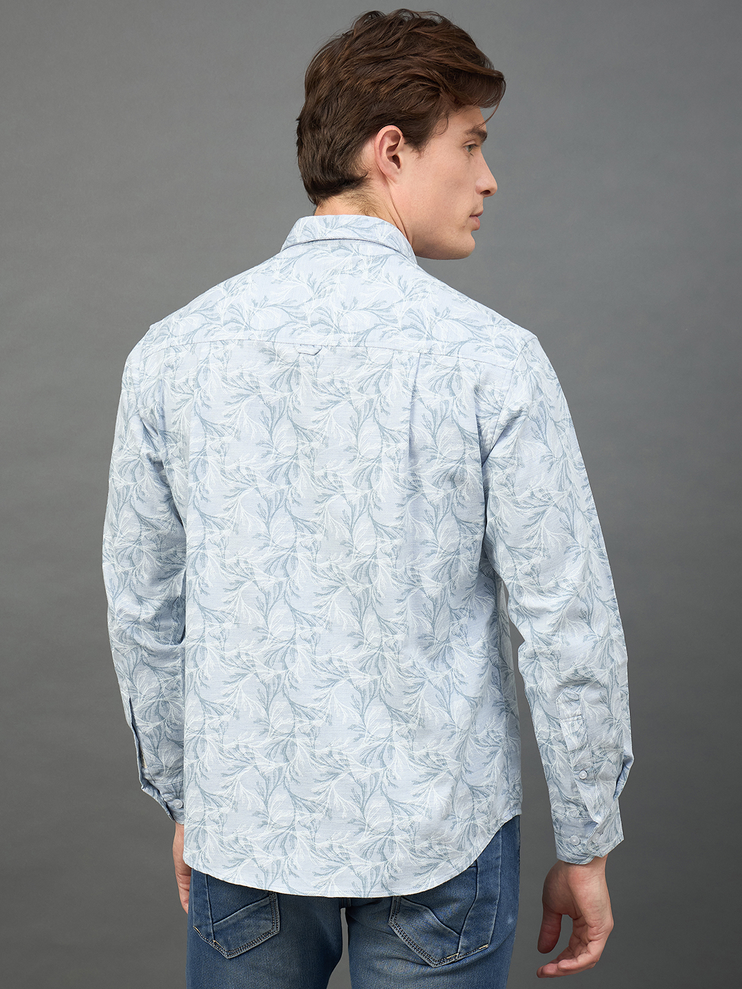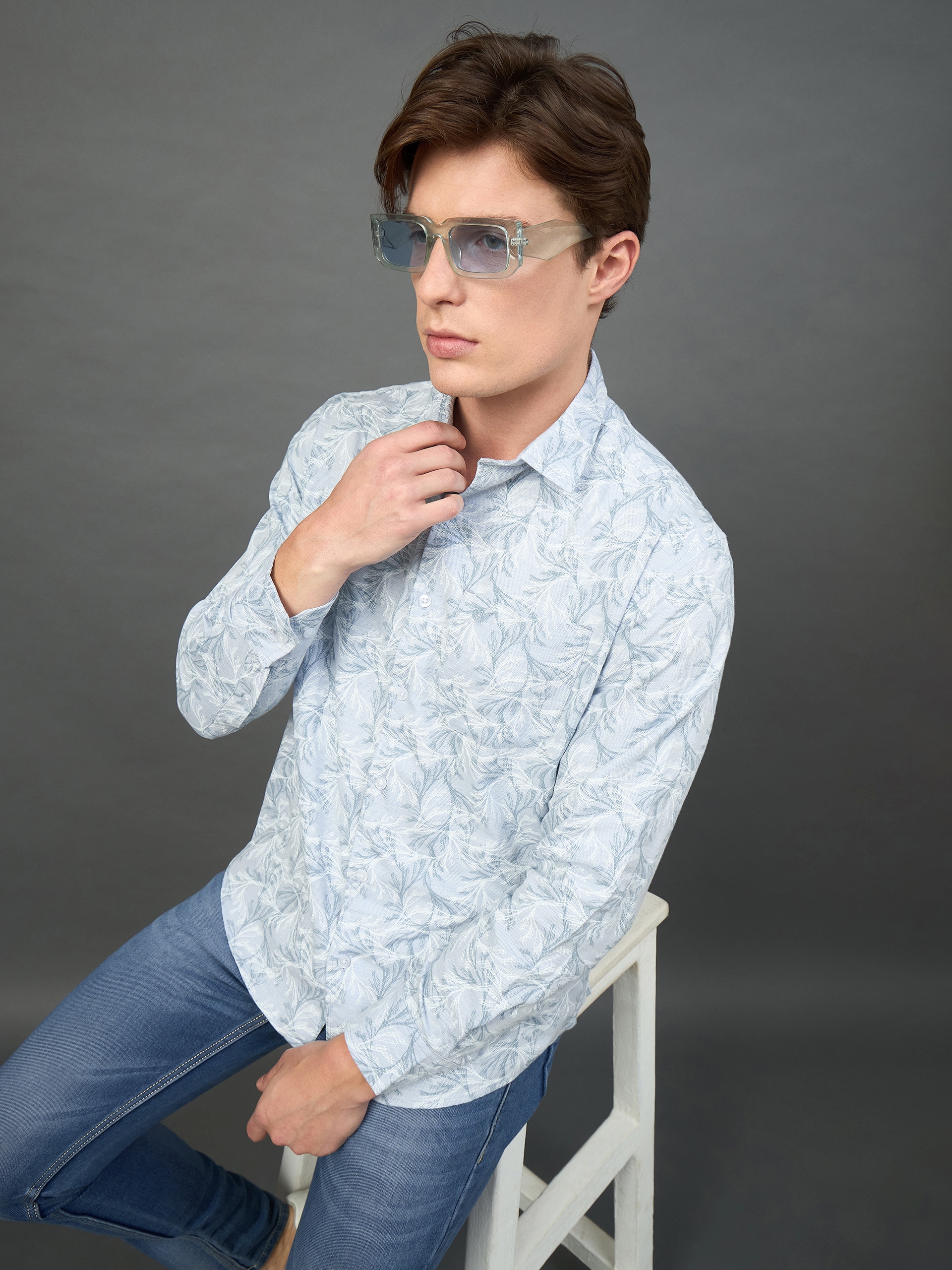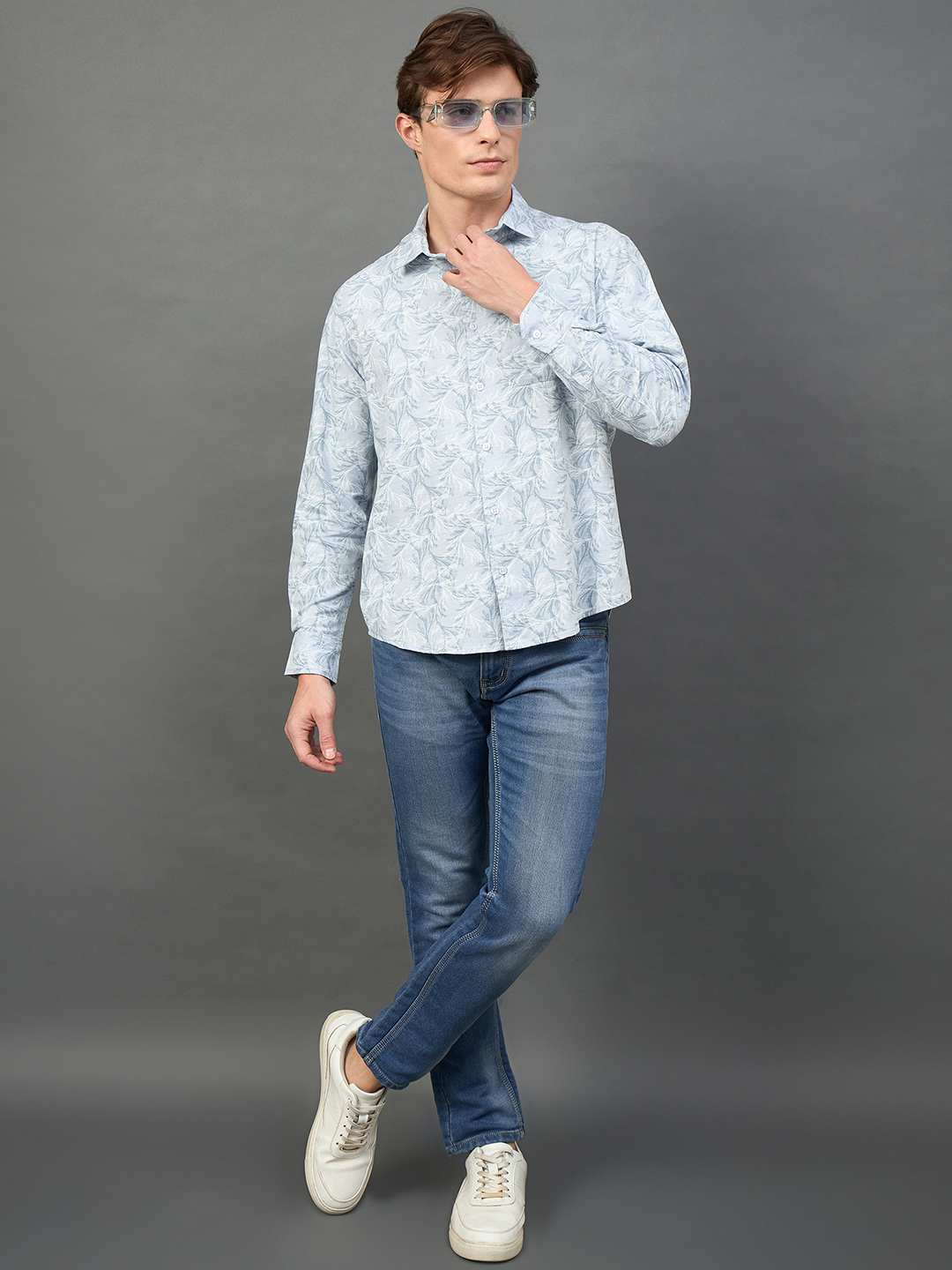 Men Slim Fit Light Blue Collar Casual Shirt