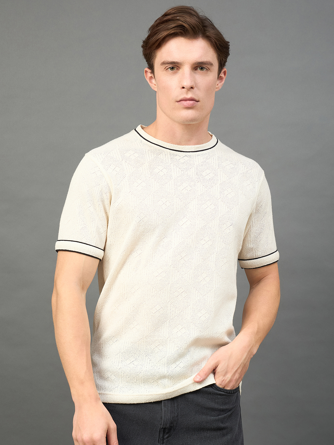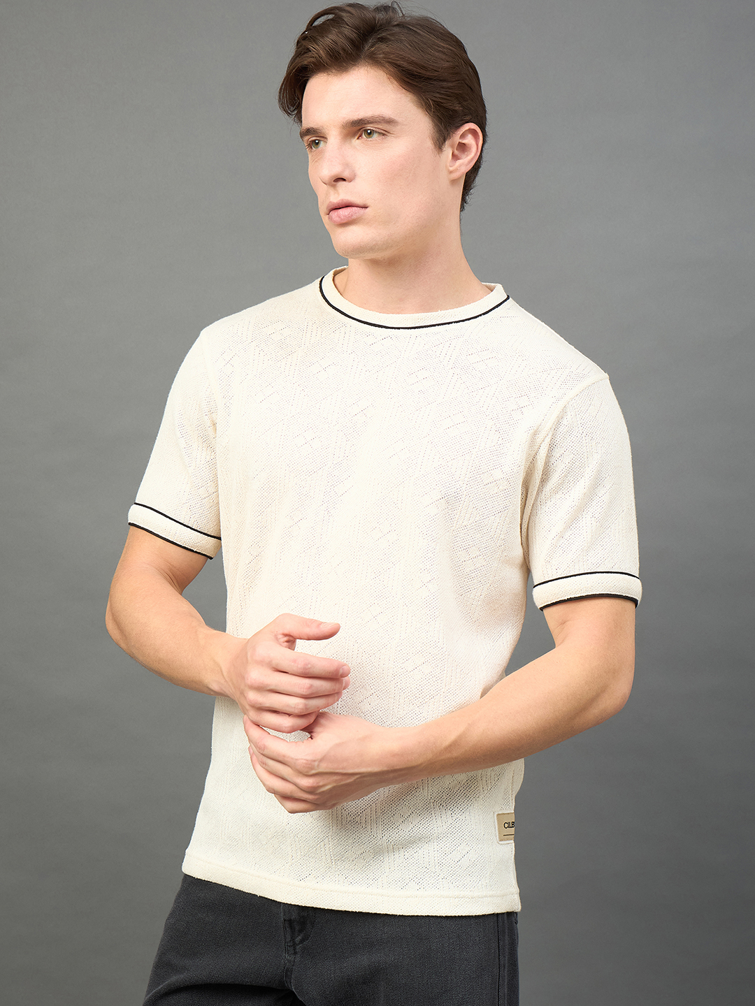 Clubyork Create Circle Printed White Round Neck T Shirt