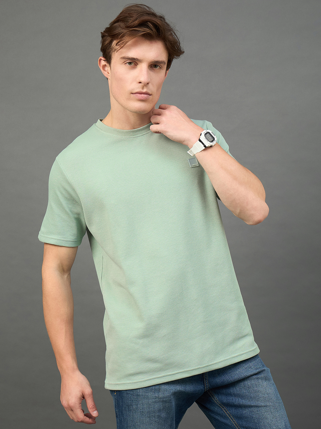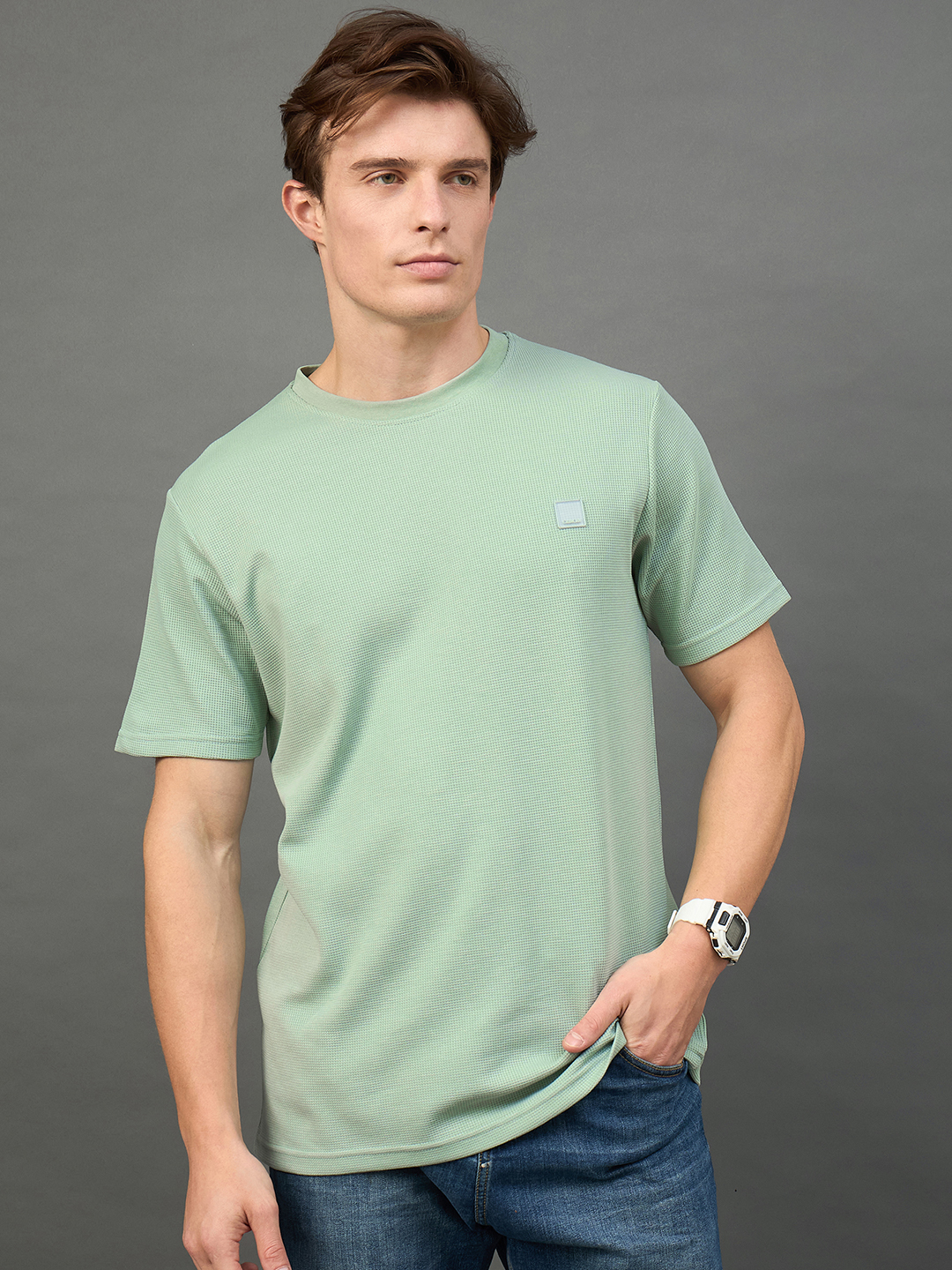 Men Solid Green Half Sleeve Round Neck T Shirt