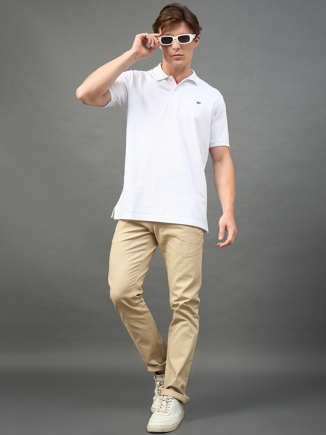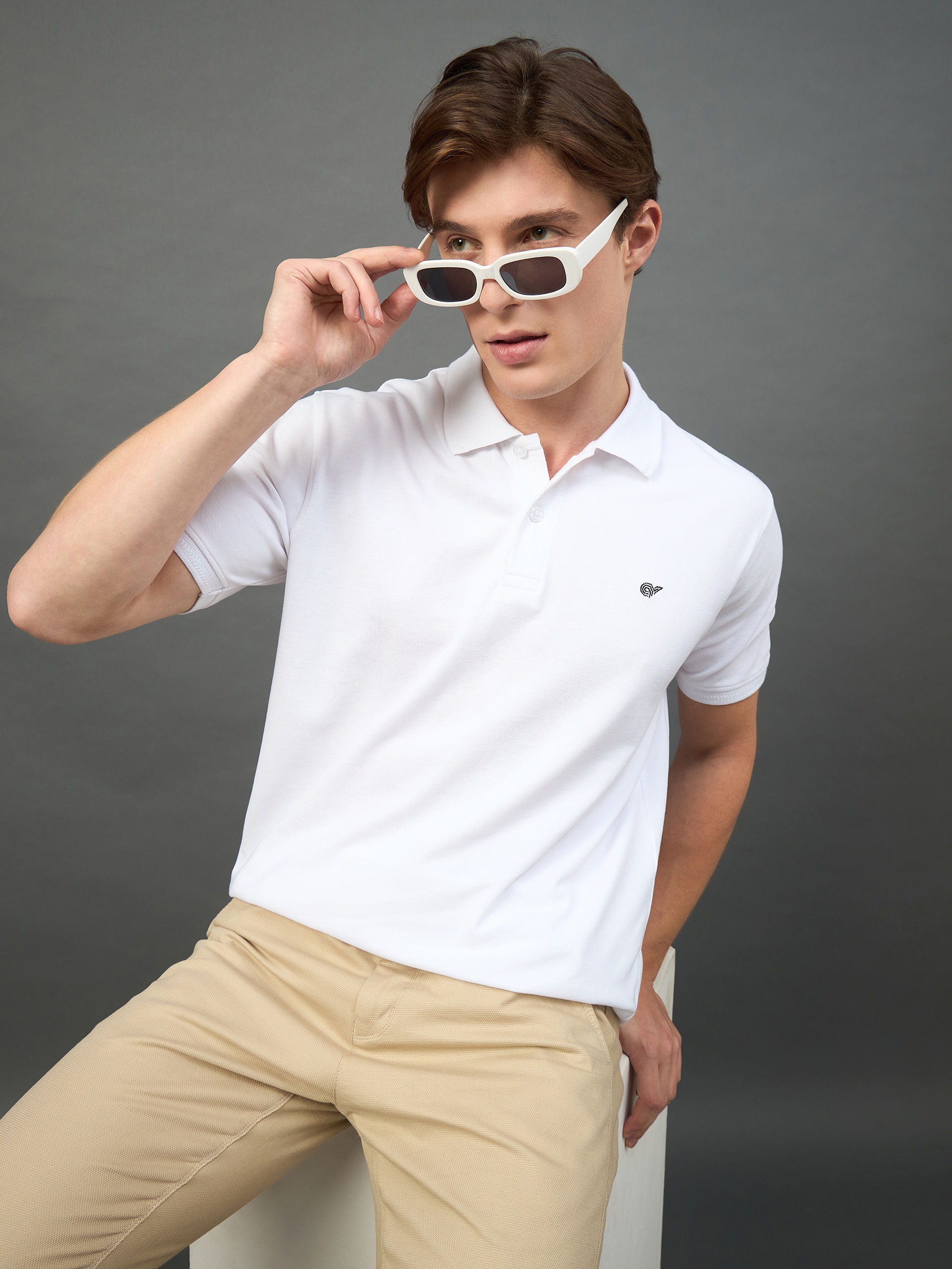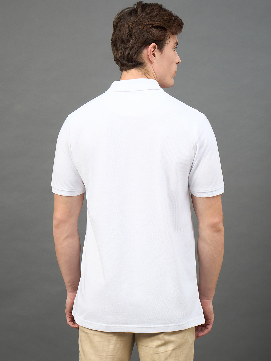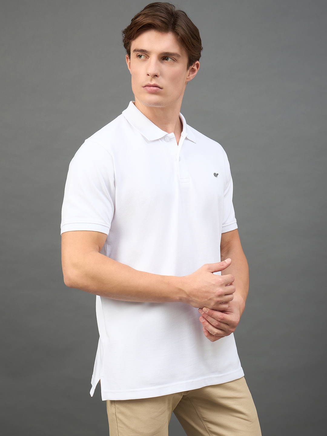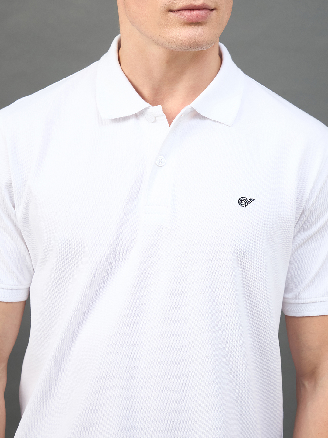 Men Solid White Polo Neck T Shirt