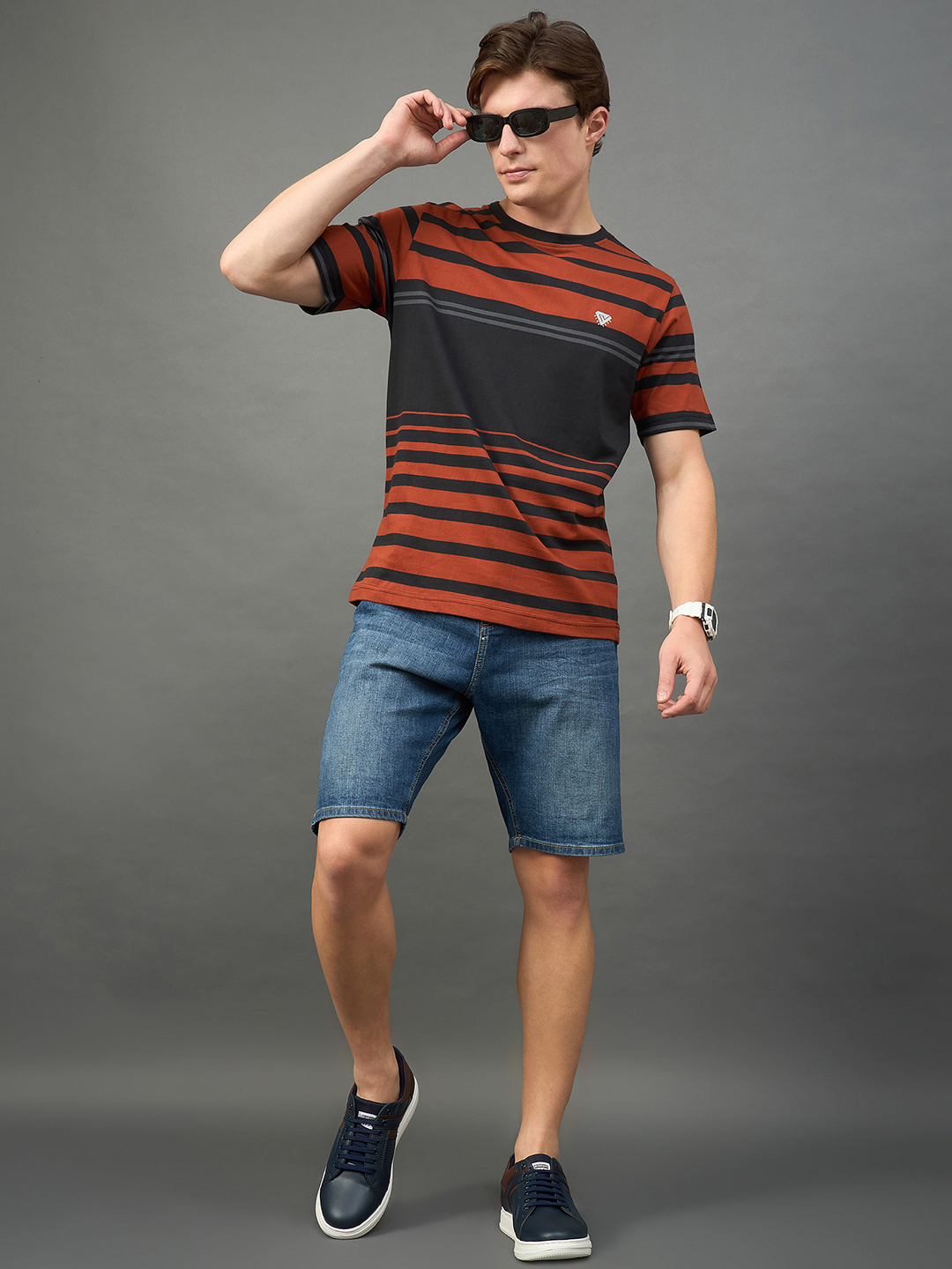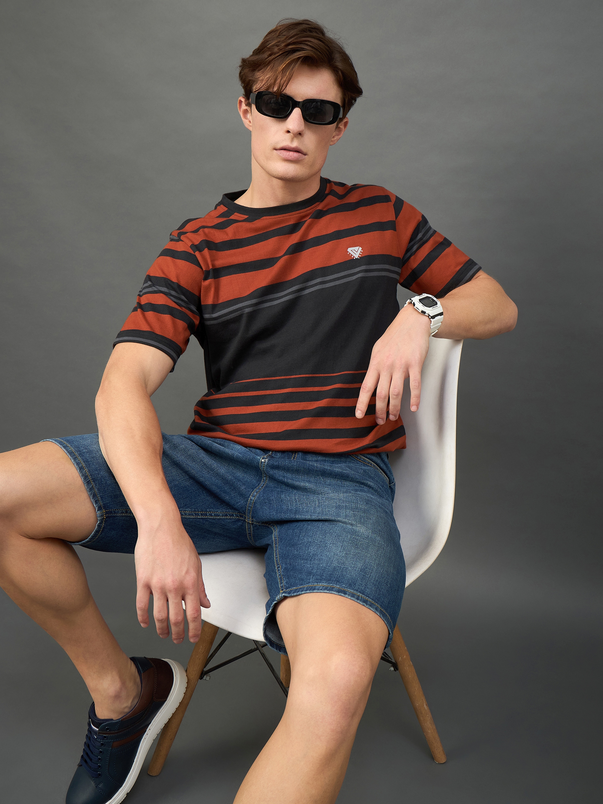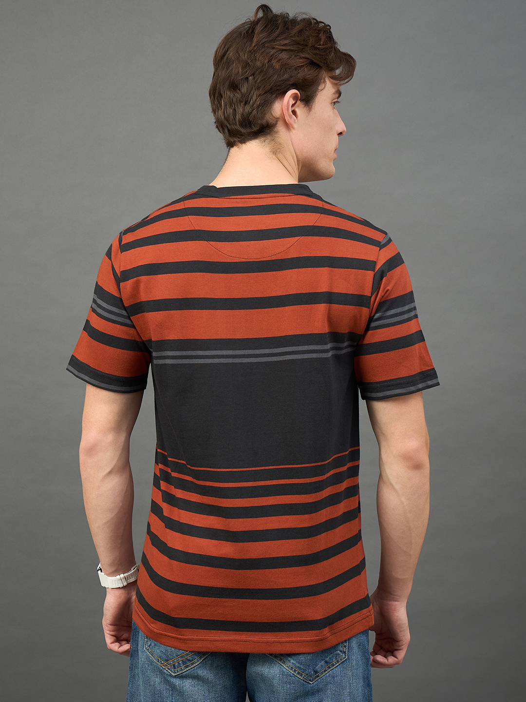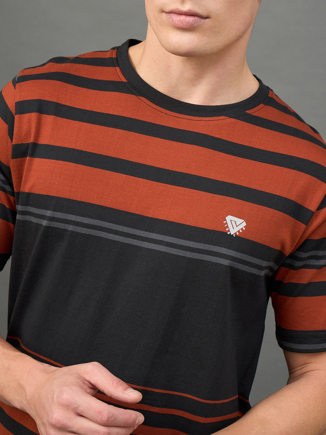 Men Striped Black Half Sleeve Round Neck T Shirt