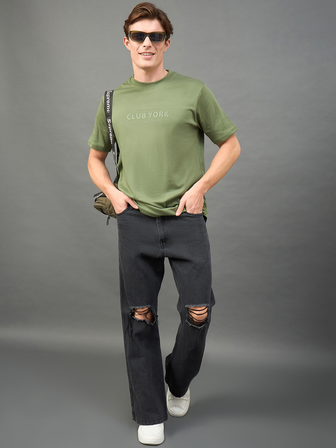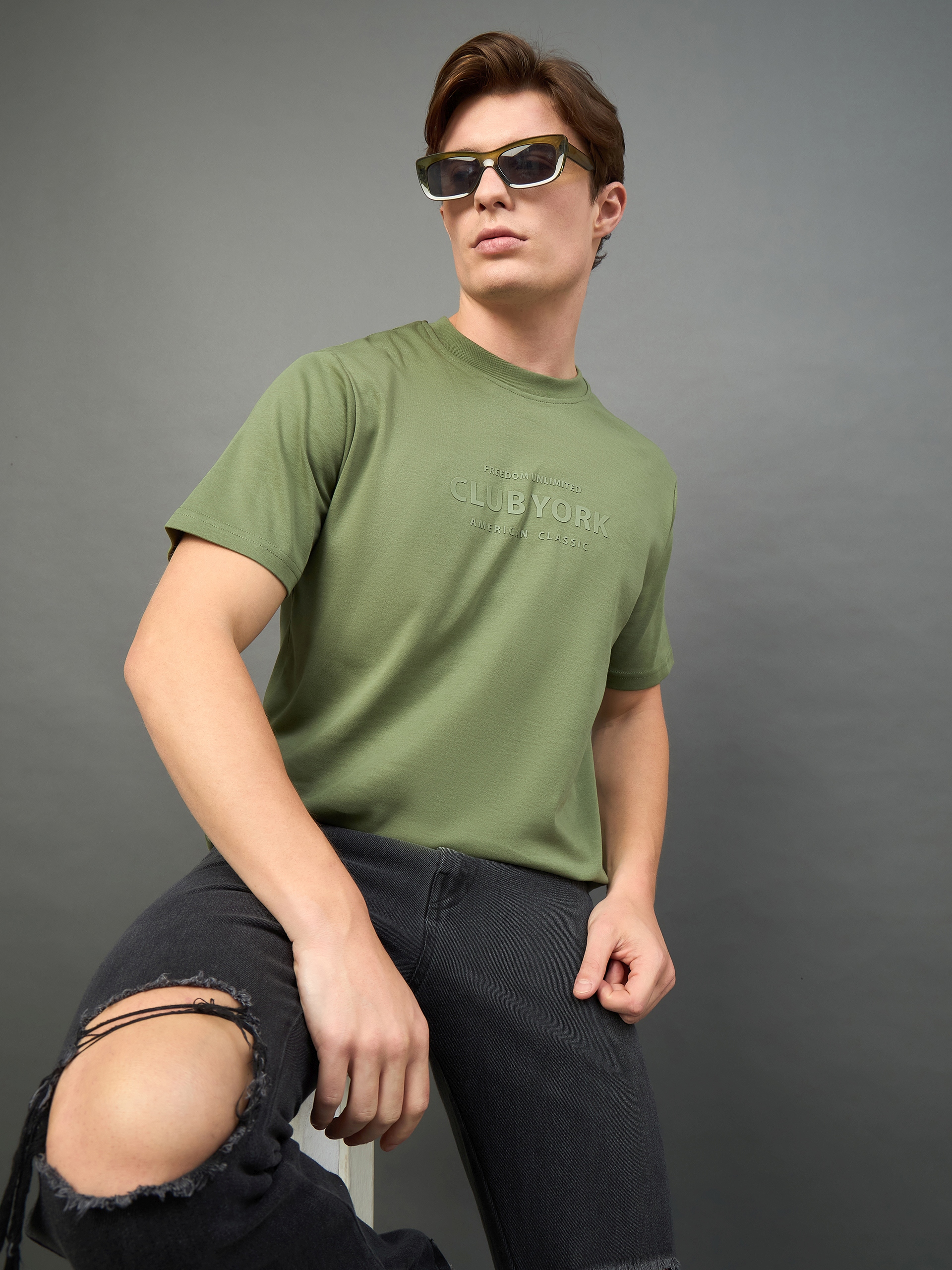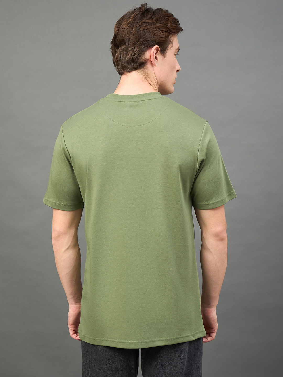 Men Horizontal Striped Lavender Half Sleeve Round Neck T Shirt