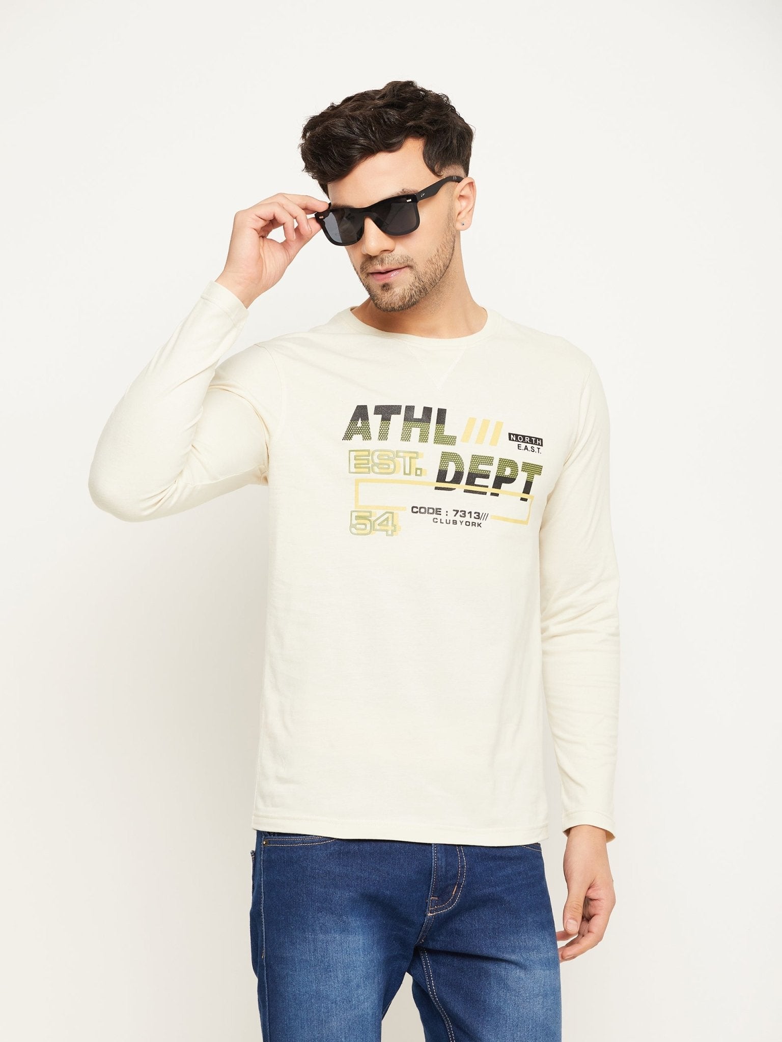 Off White Printed Round Neck T-Shirt 2225