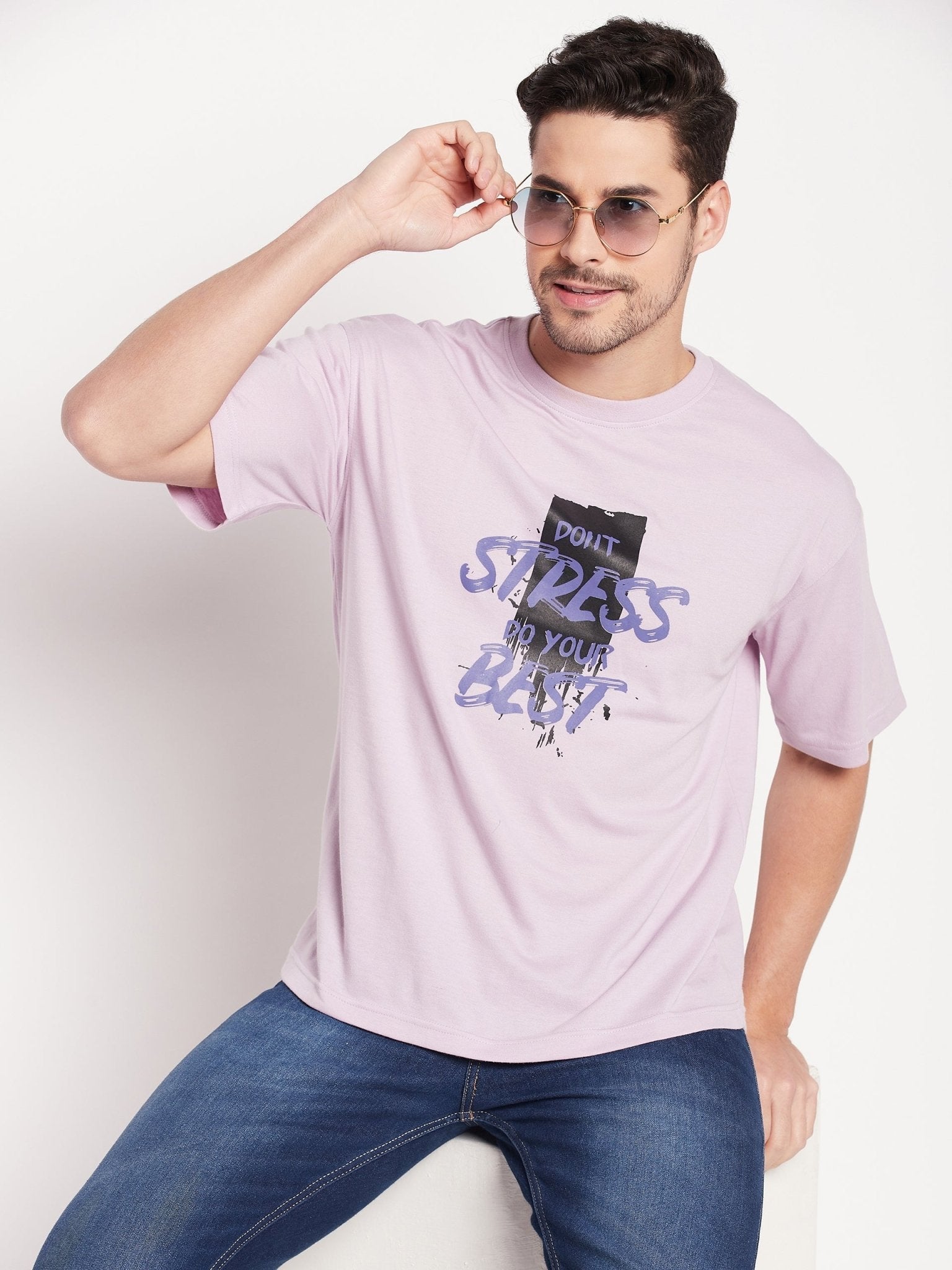 Men Dyed Light Pink Round Neck Slim Fit T Shirt