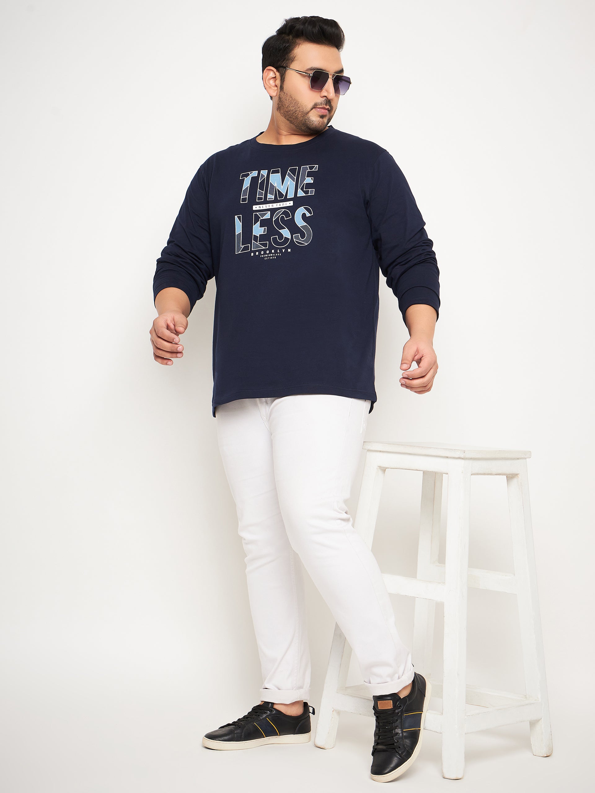 Navy Blue Printed Plus Size Tshirt 1592