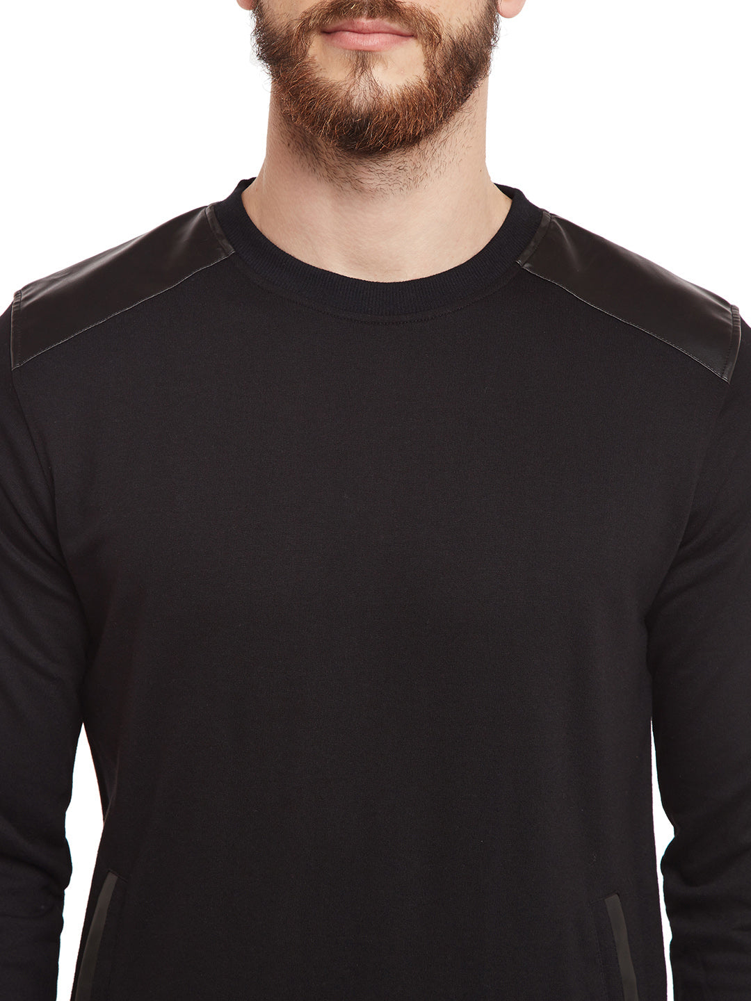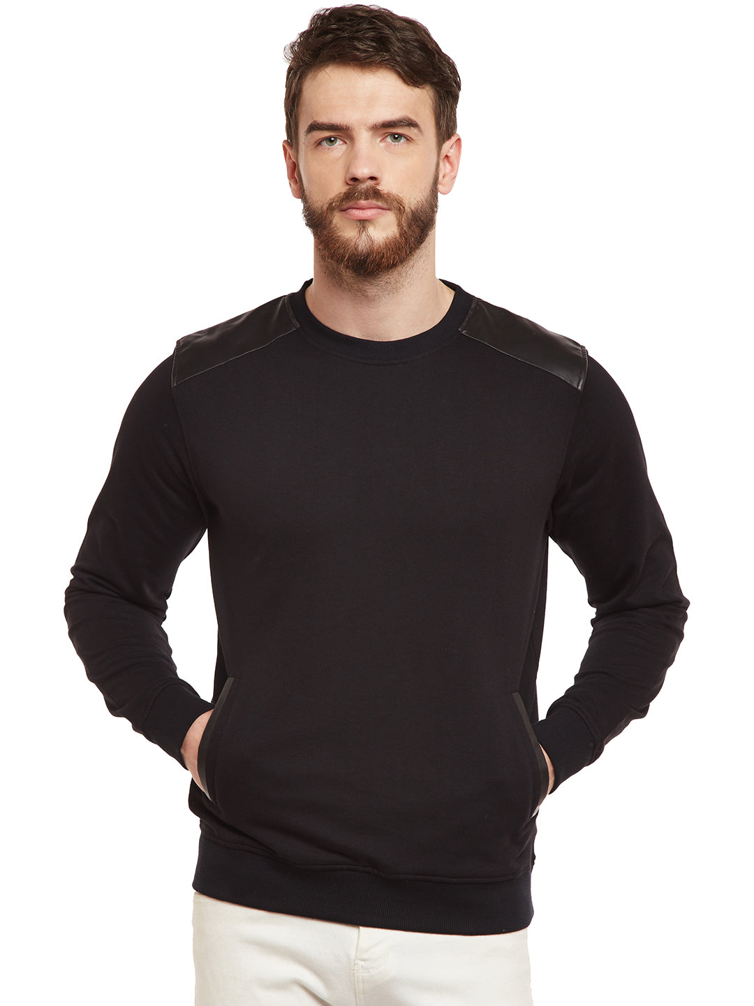 Mens Round Neck Sweatshirt Has Shoulder Leather Patches 5866