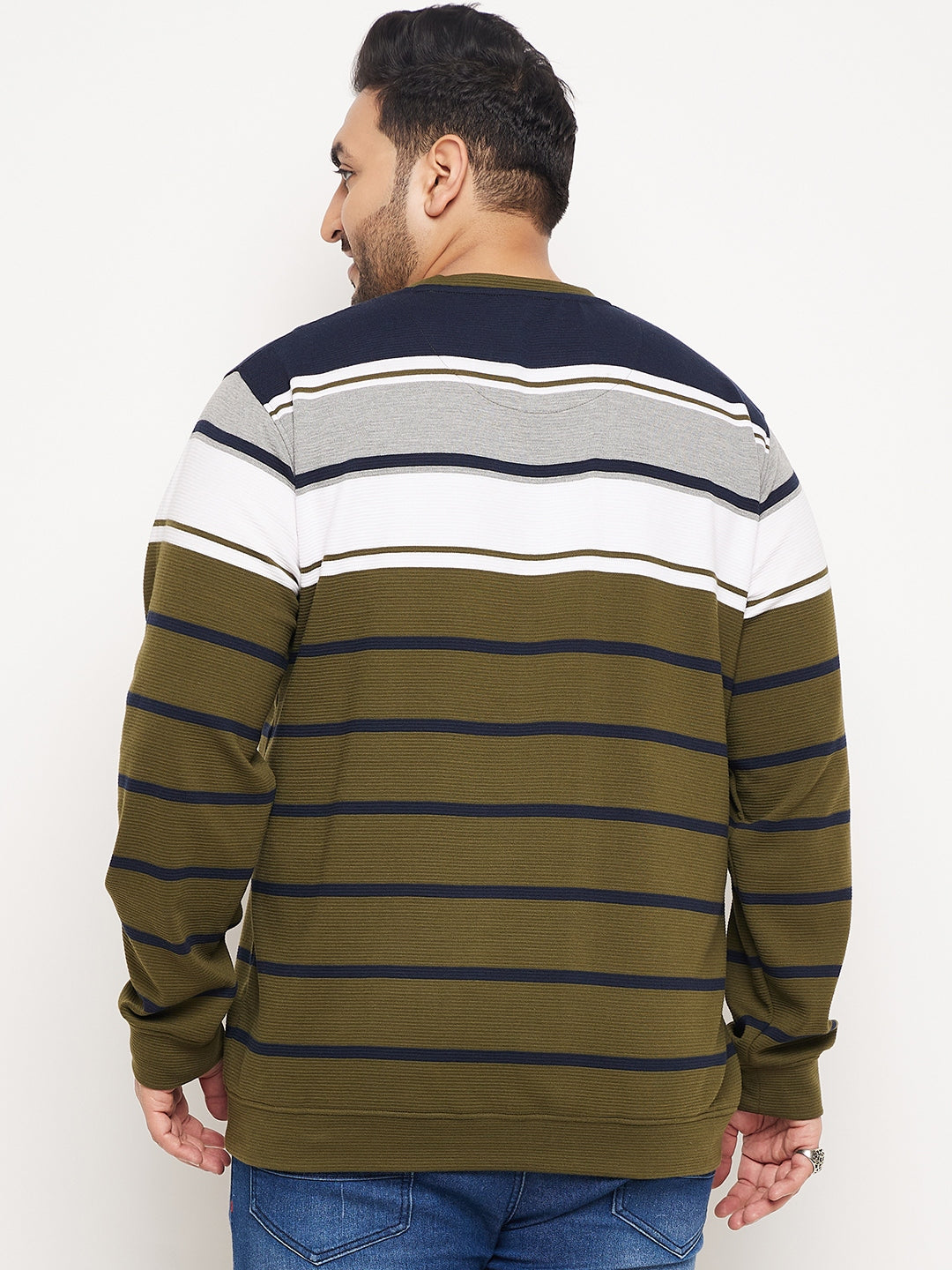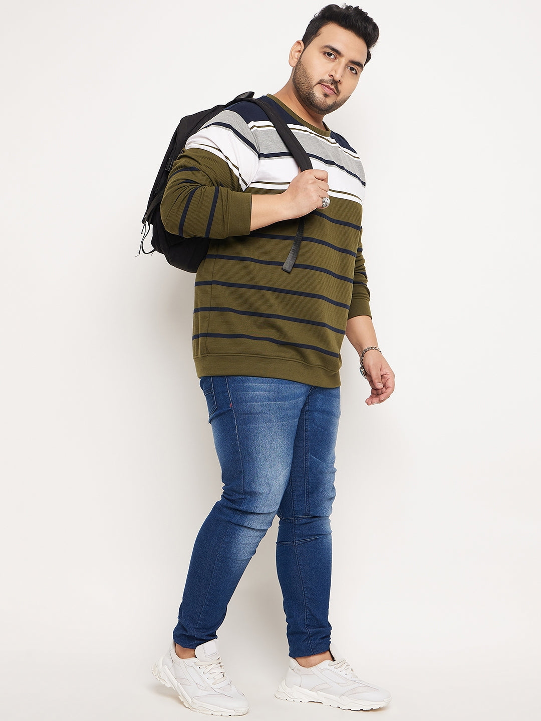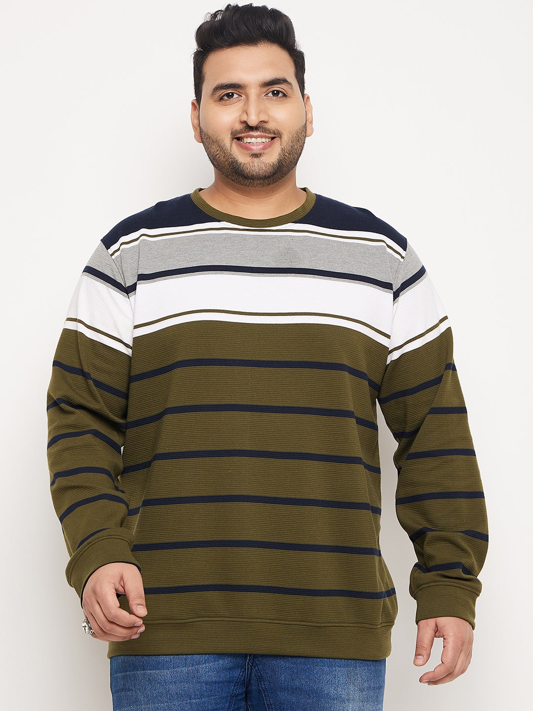 Multicolor Striped Full Sleeve Round Neck Plus Size Sweatshirt 4863