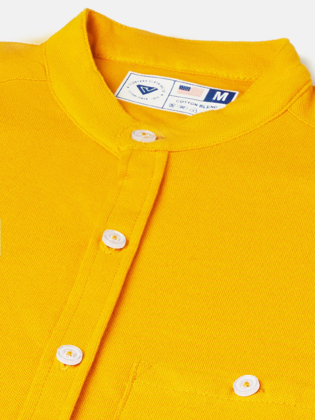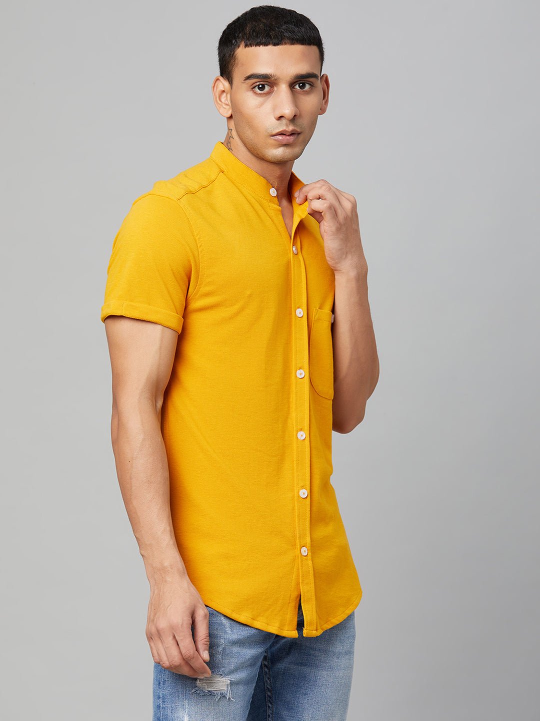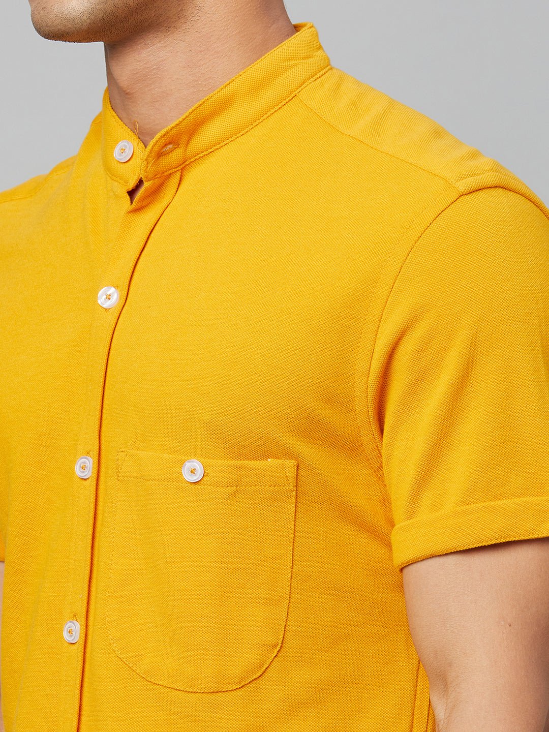 Lemon Yellow Solid Mandarin Collar Shirt 7869