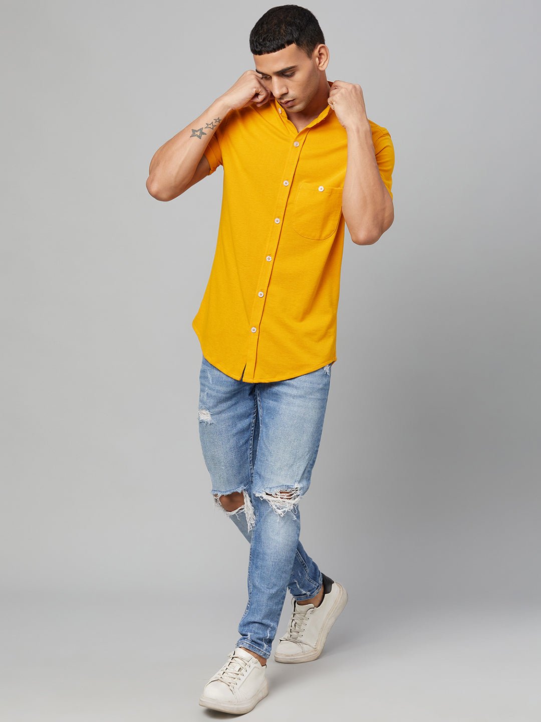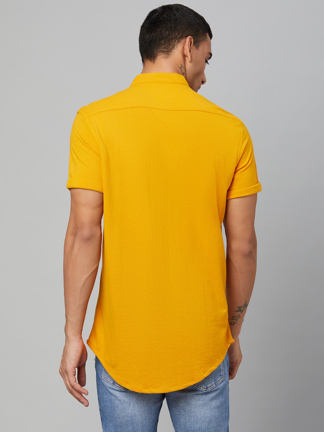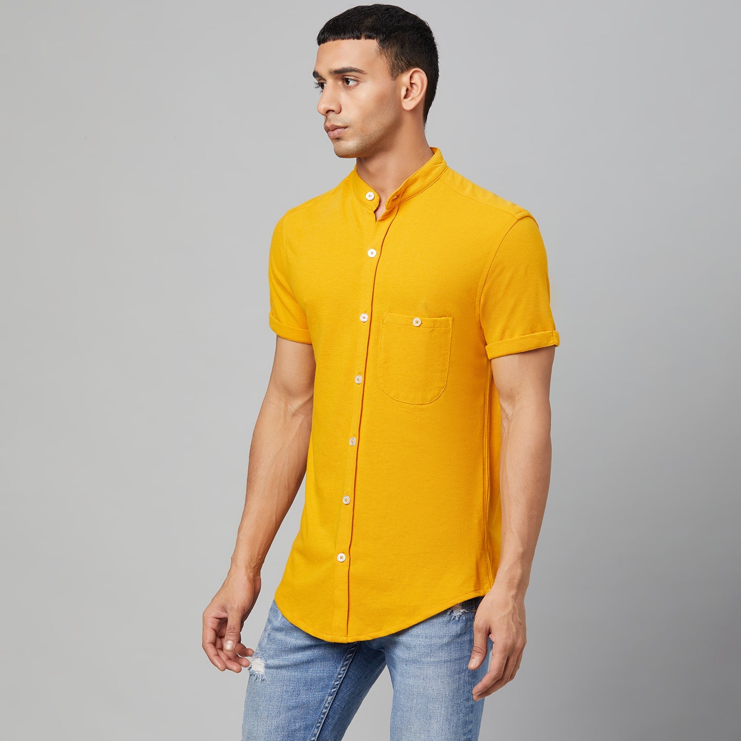 Lemon Yellow Solid Mandarin Collar Shirt 7869