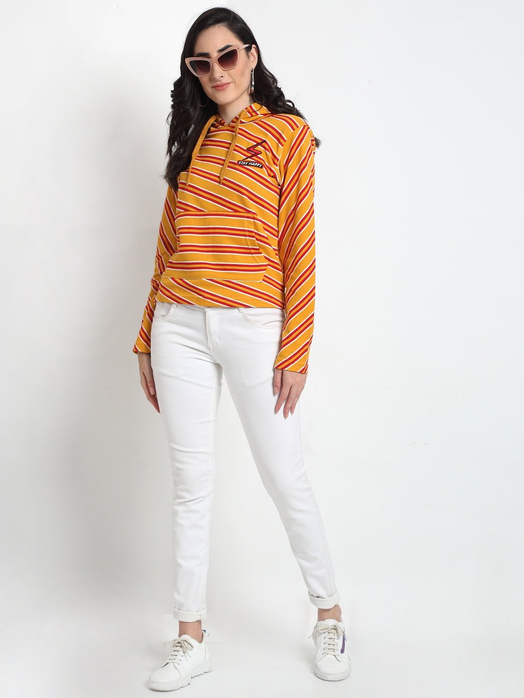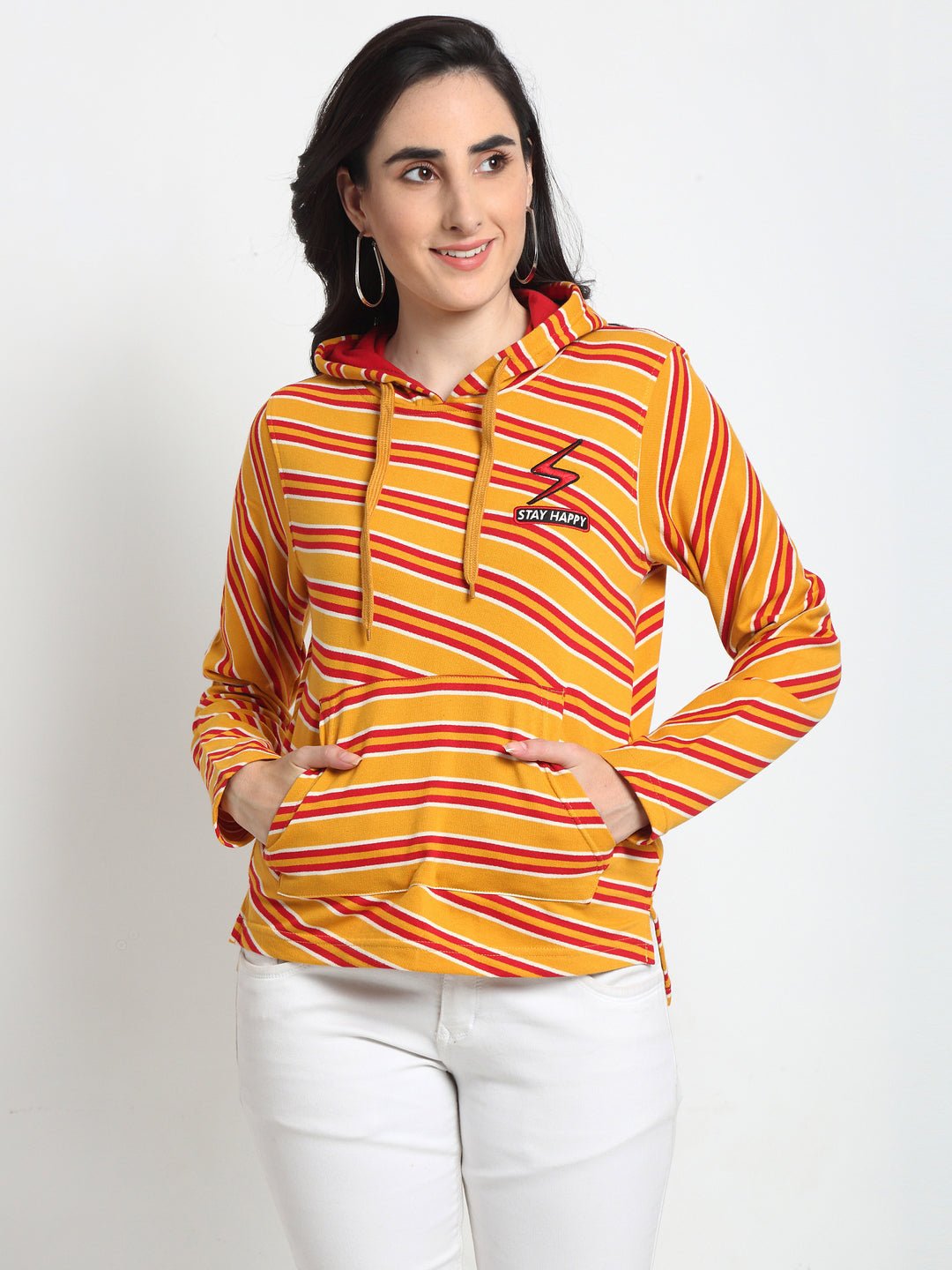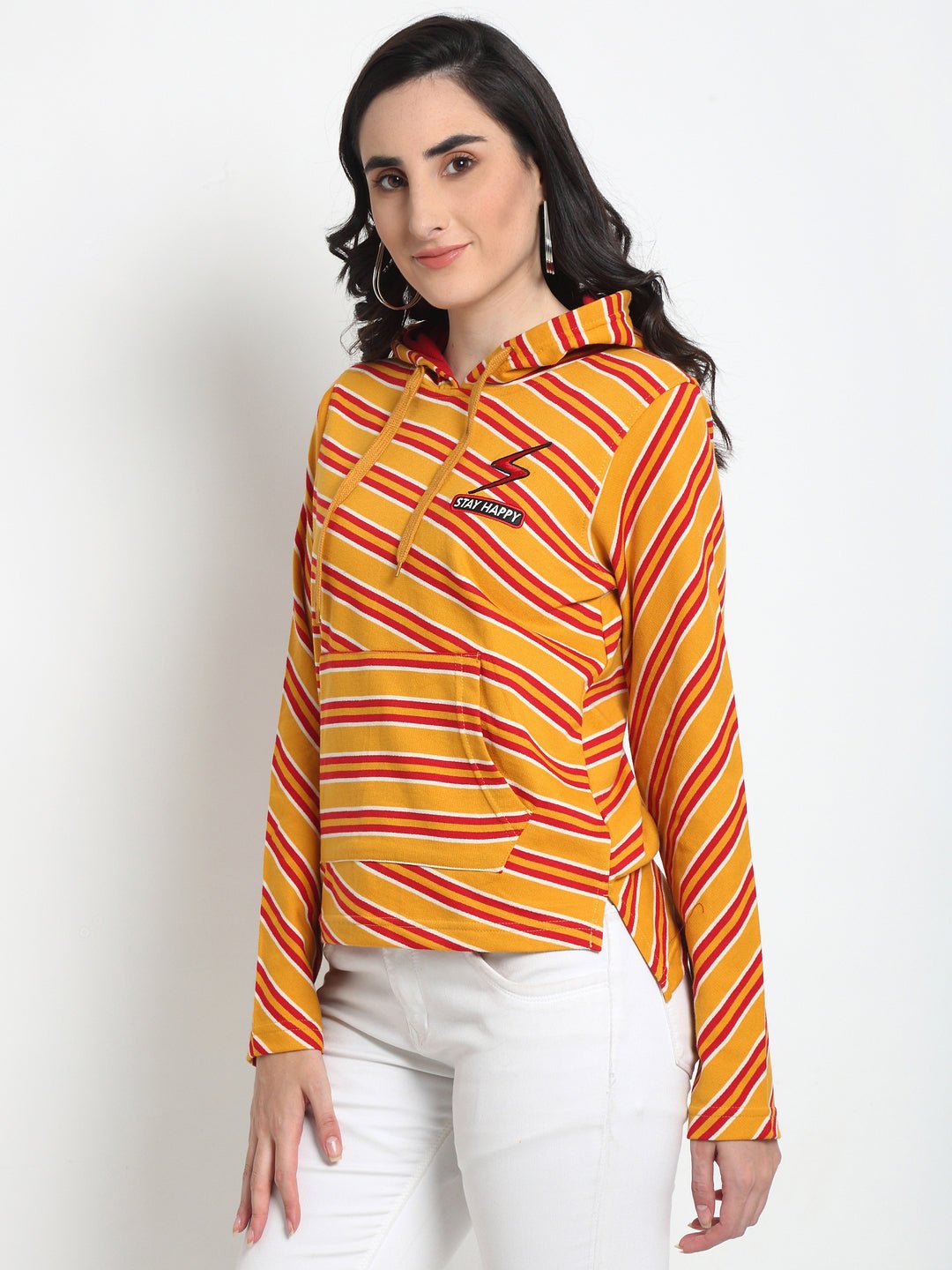 Mustard Striped Hooded Sweatshirt Cyw402 5605