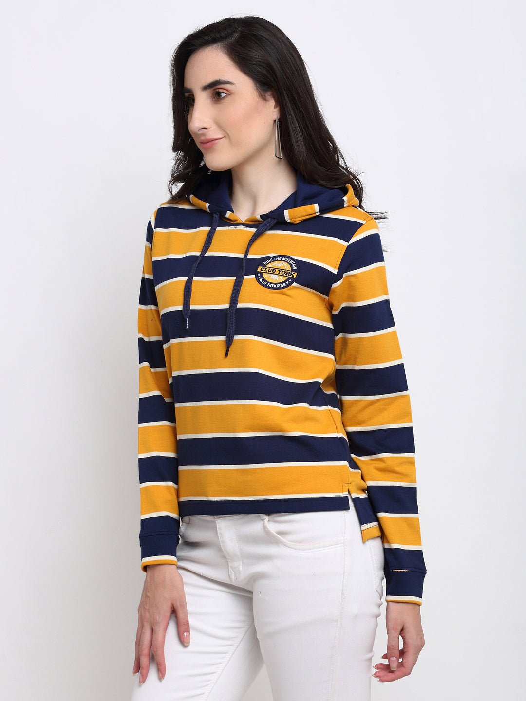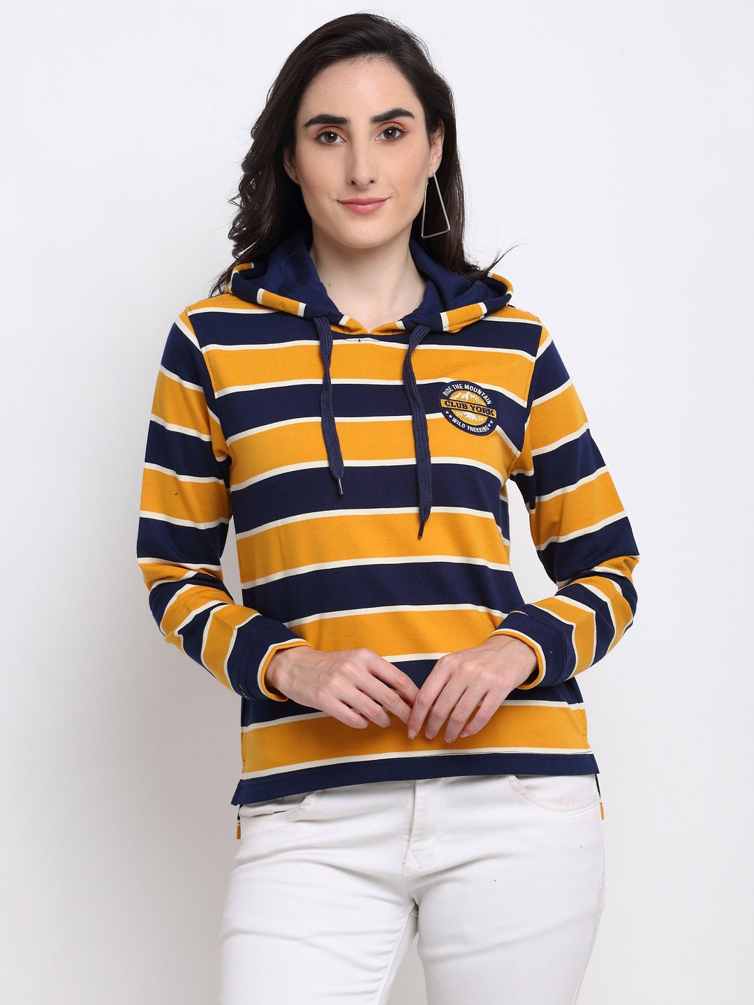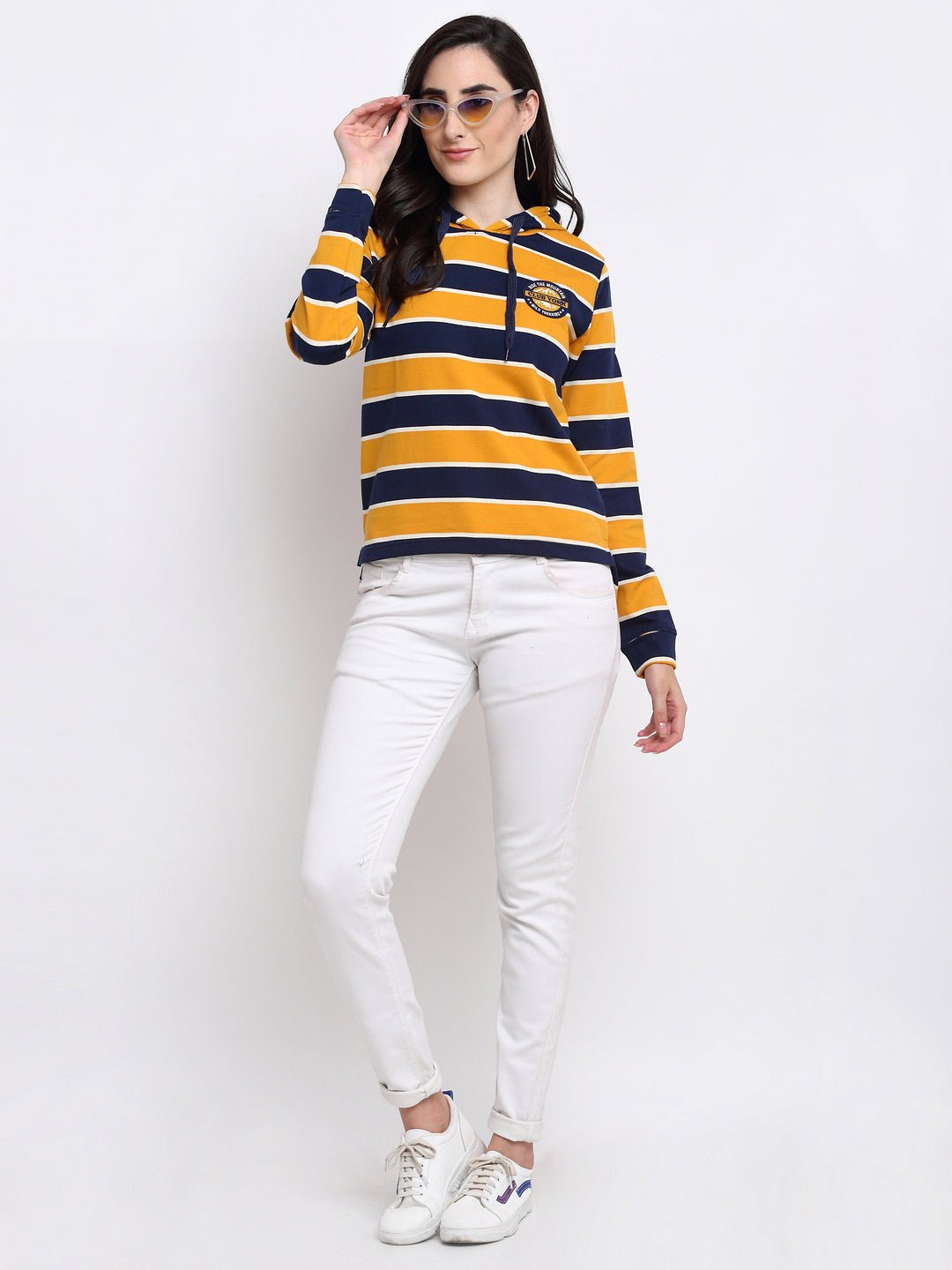 Mustard Striped Hooded Sweatshirt Cyw405 1720