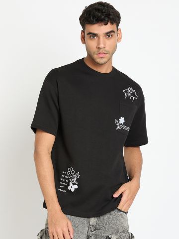 Men Solid Mocha Mouse Round Neck Oversized T Shirt