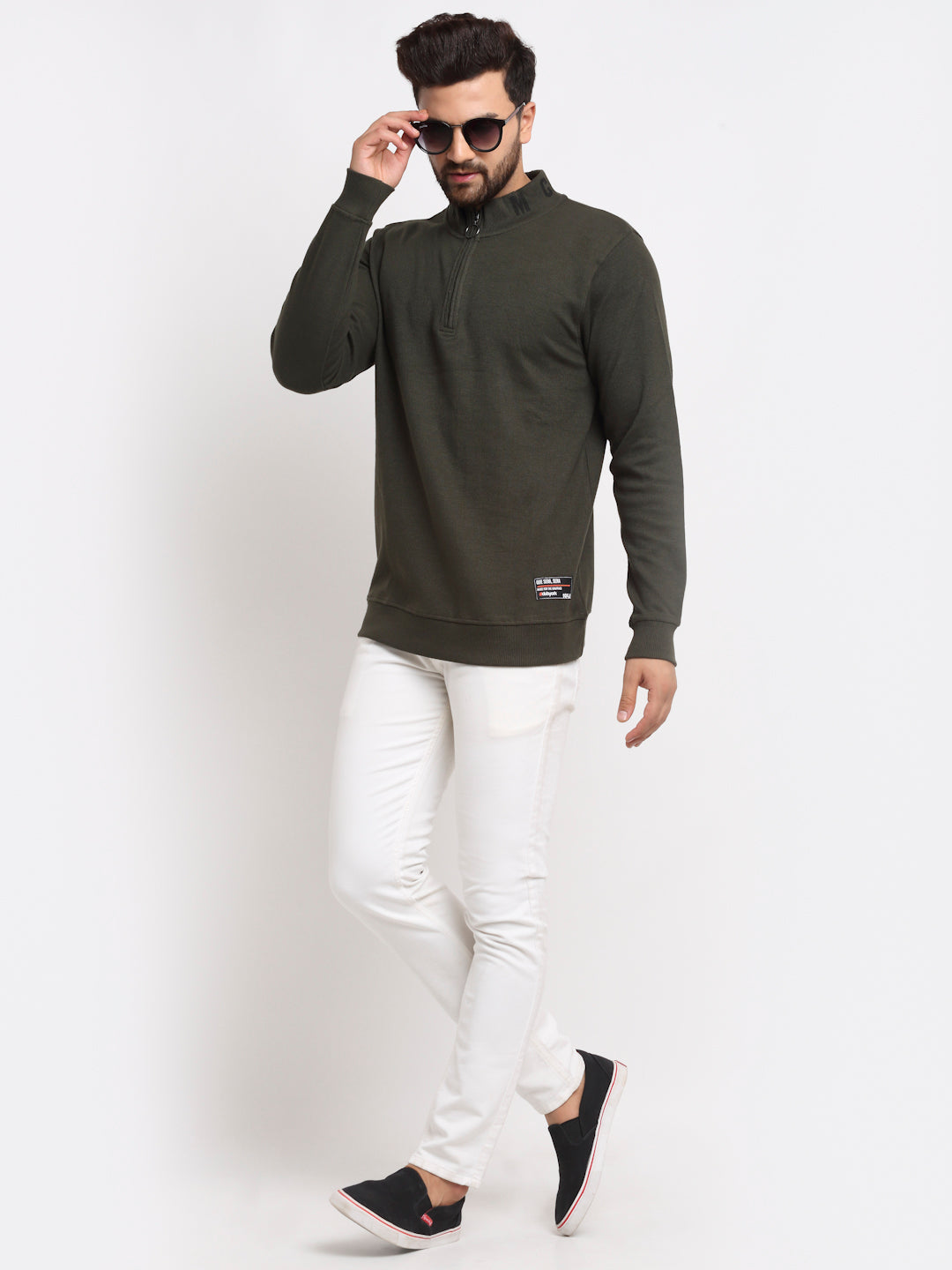 Olive Solid Front Half Zipper High Neck Sweatshirt 4800