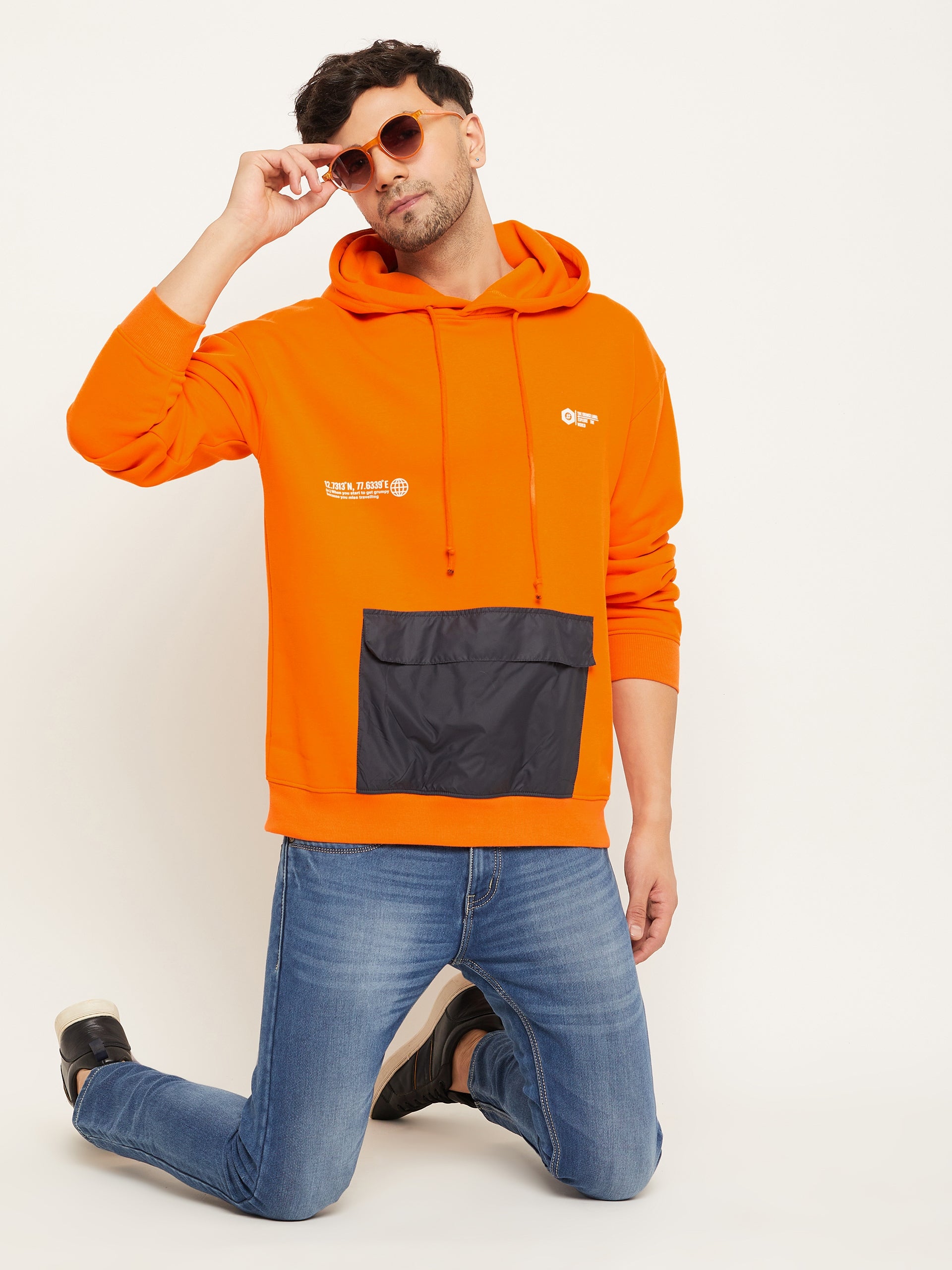 Orange Printed Full Sleeve Hooded Sweatshirt 5707
