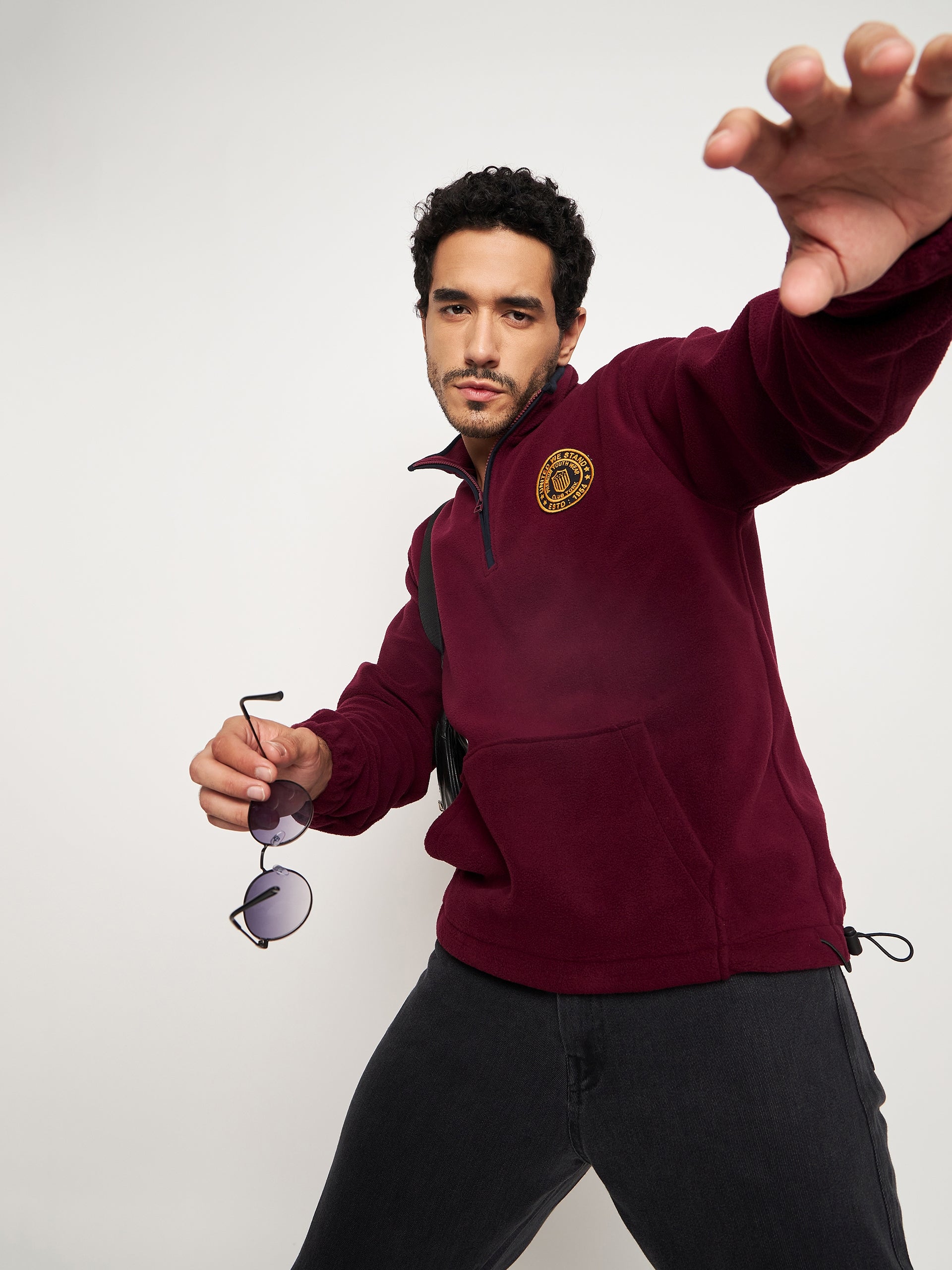 Wine Solid Full Sleeve Mock Neck Sweatshirt 3878