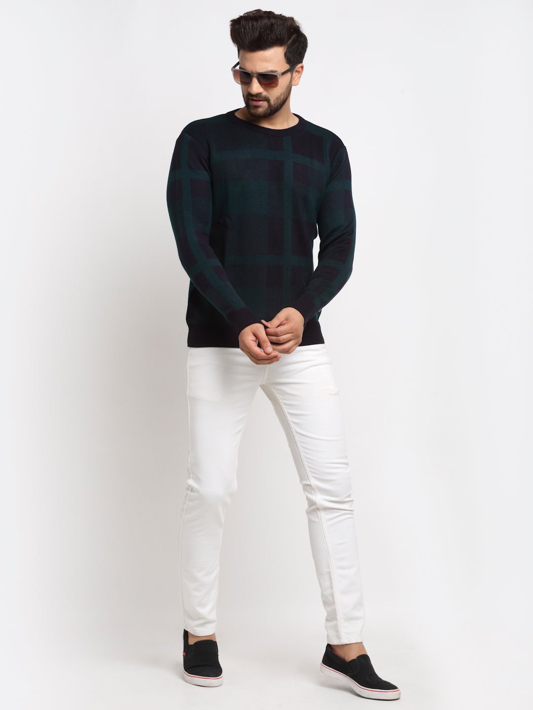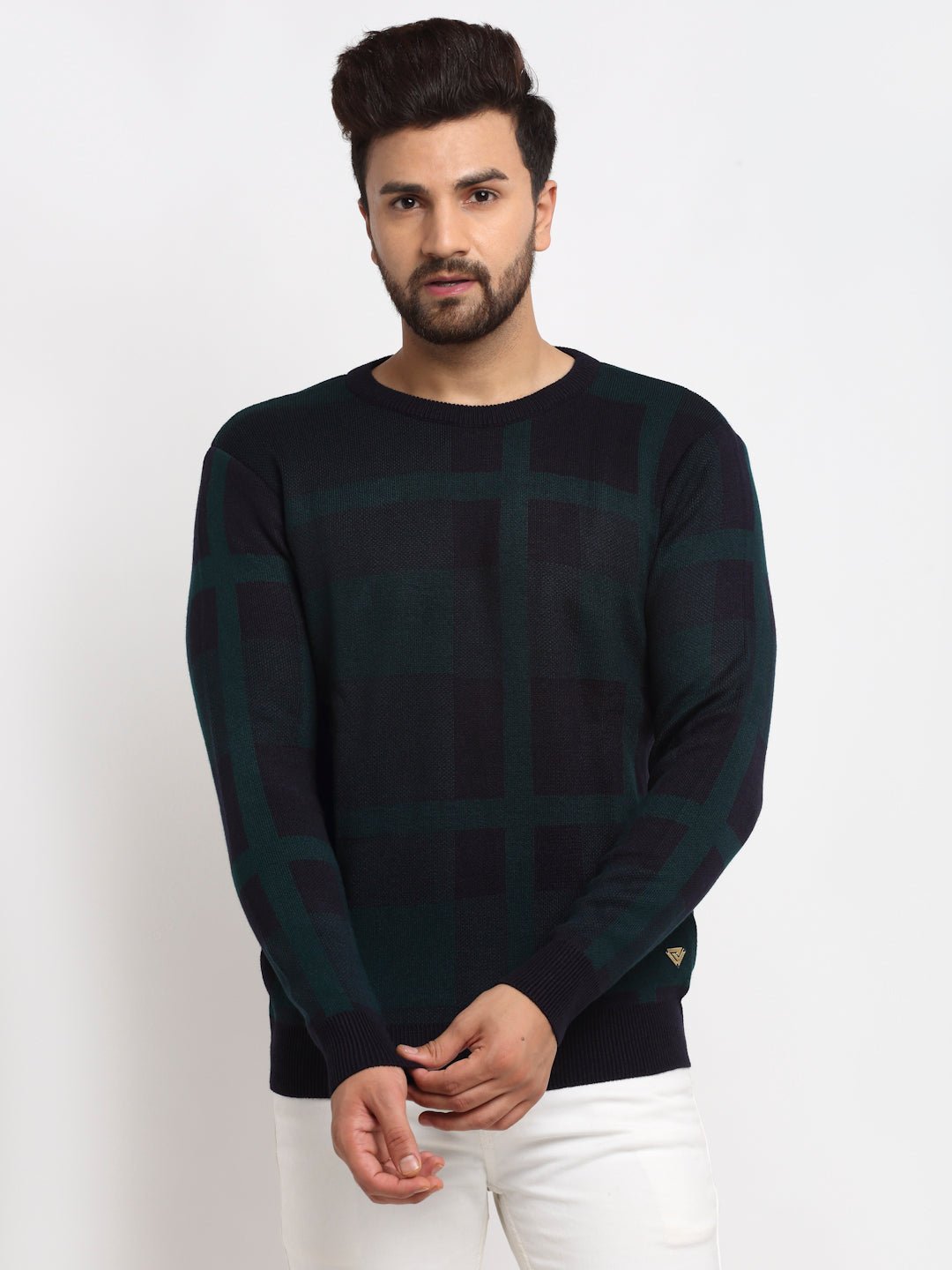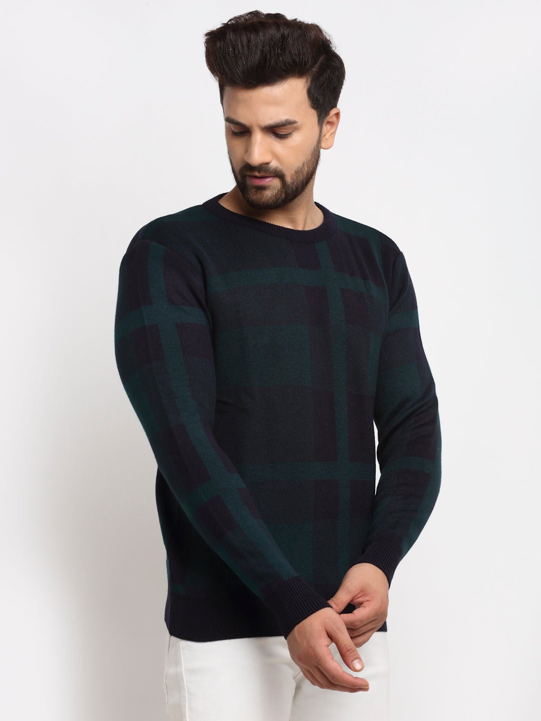 Navy Checked Round Neck Sweater Cyc1215 9078