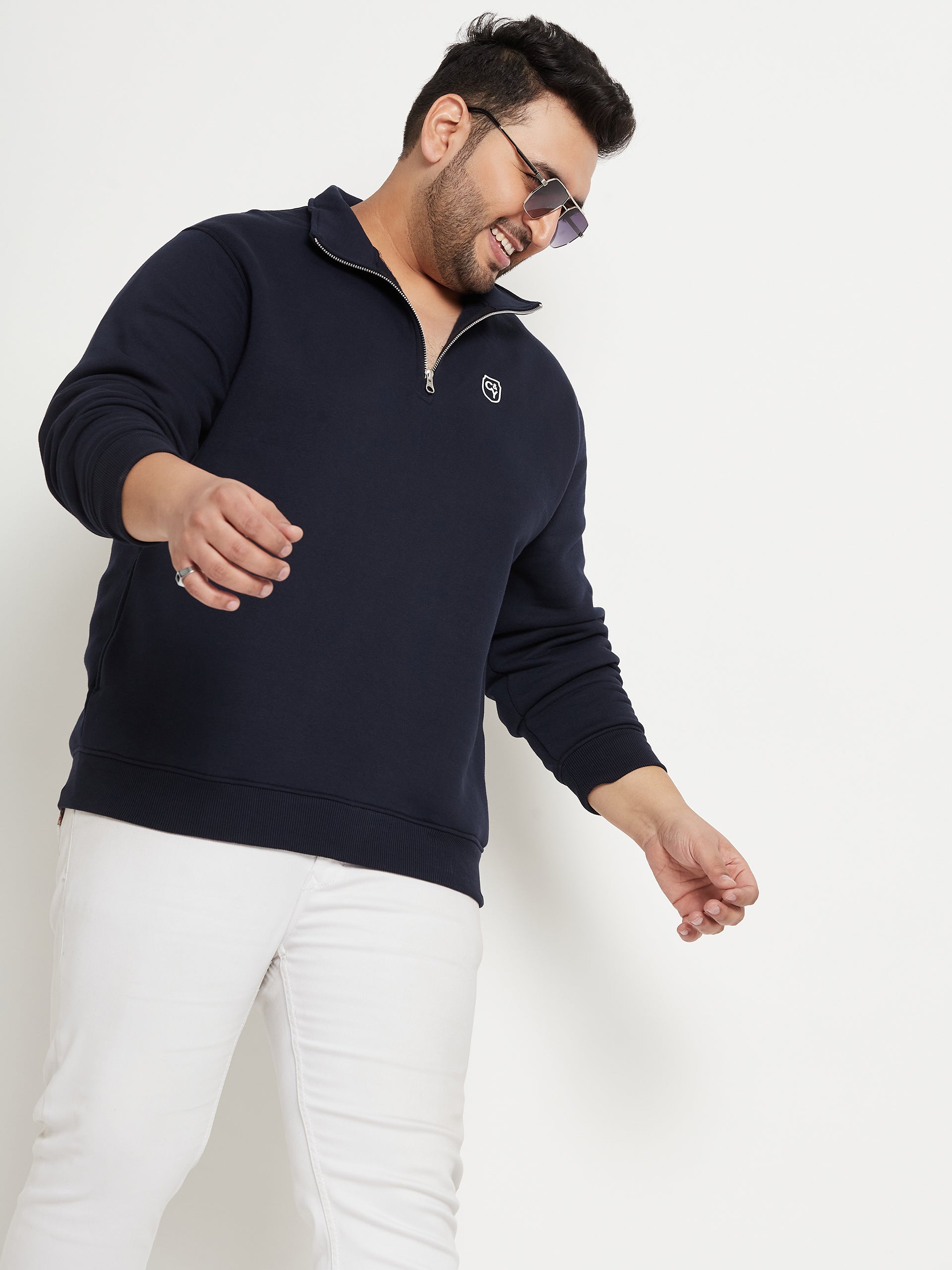 Navy Solid Full Sleeve Mock Neck Plus Size Sweatshirt 9513