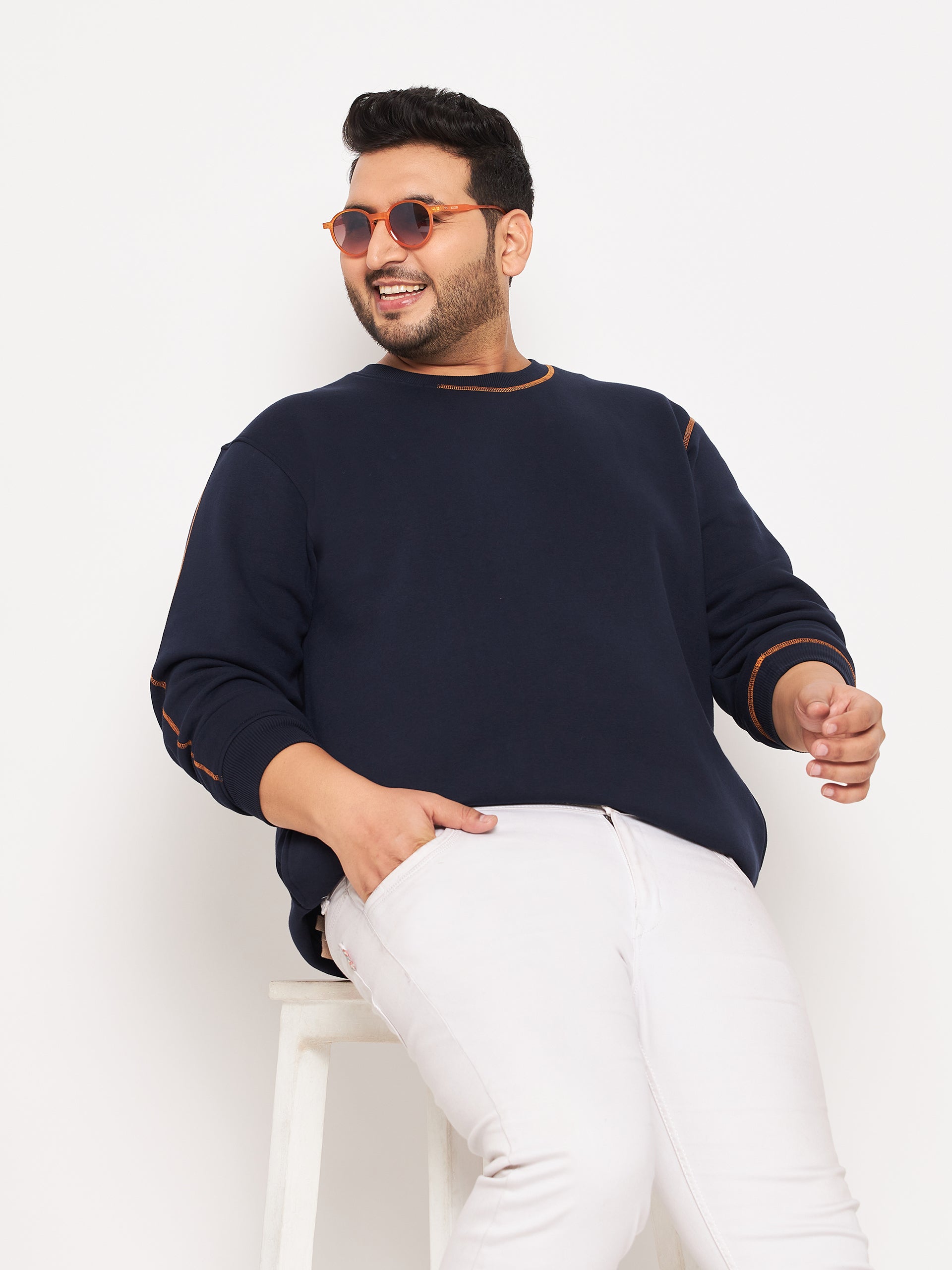 Navy Solid Full Sleeve Round Neck Plus Size Sweatshirt 7535