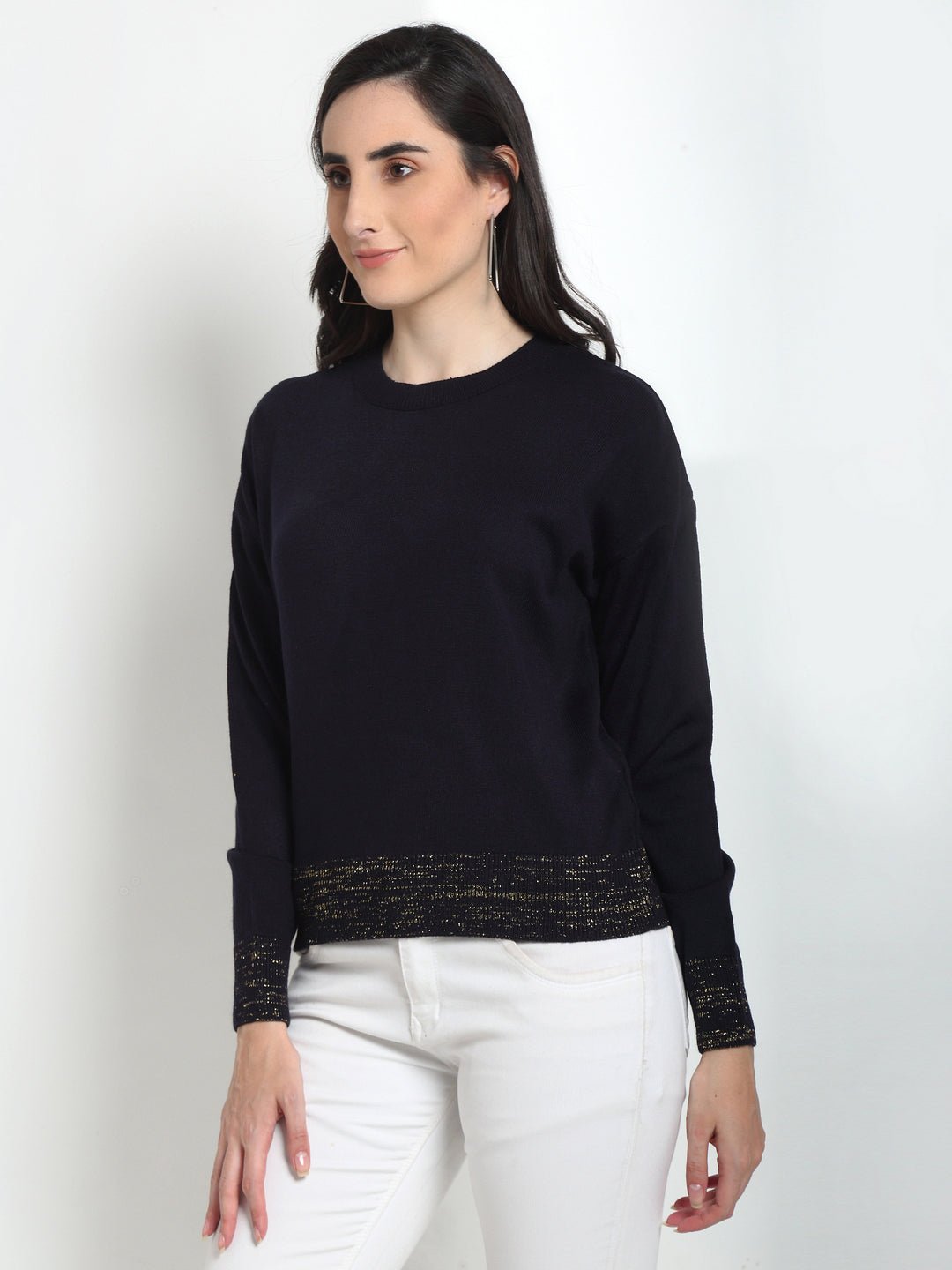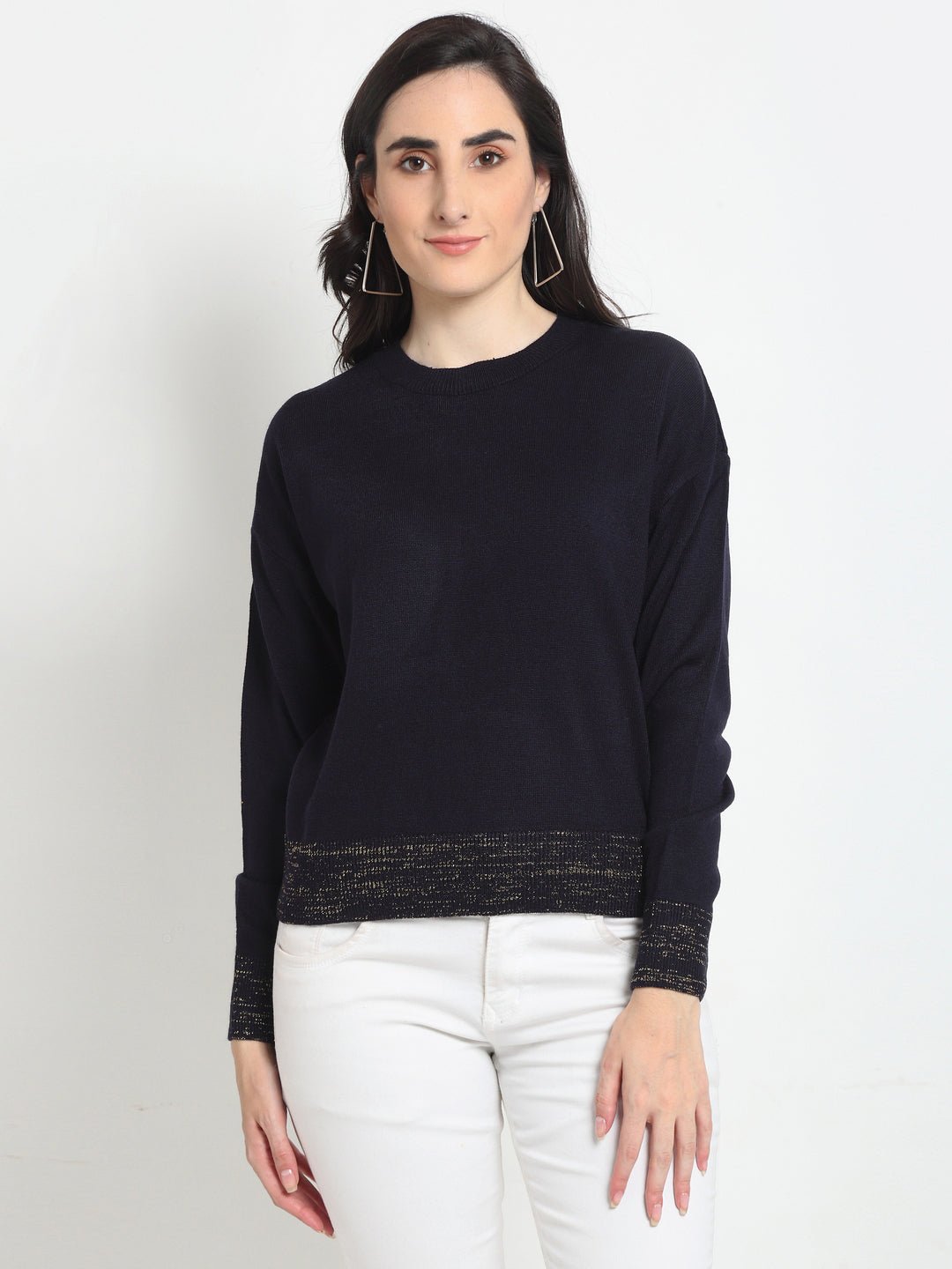 Navyblue Solid Round Neck Sweater Cycw510 4510