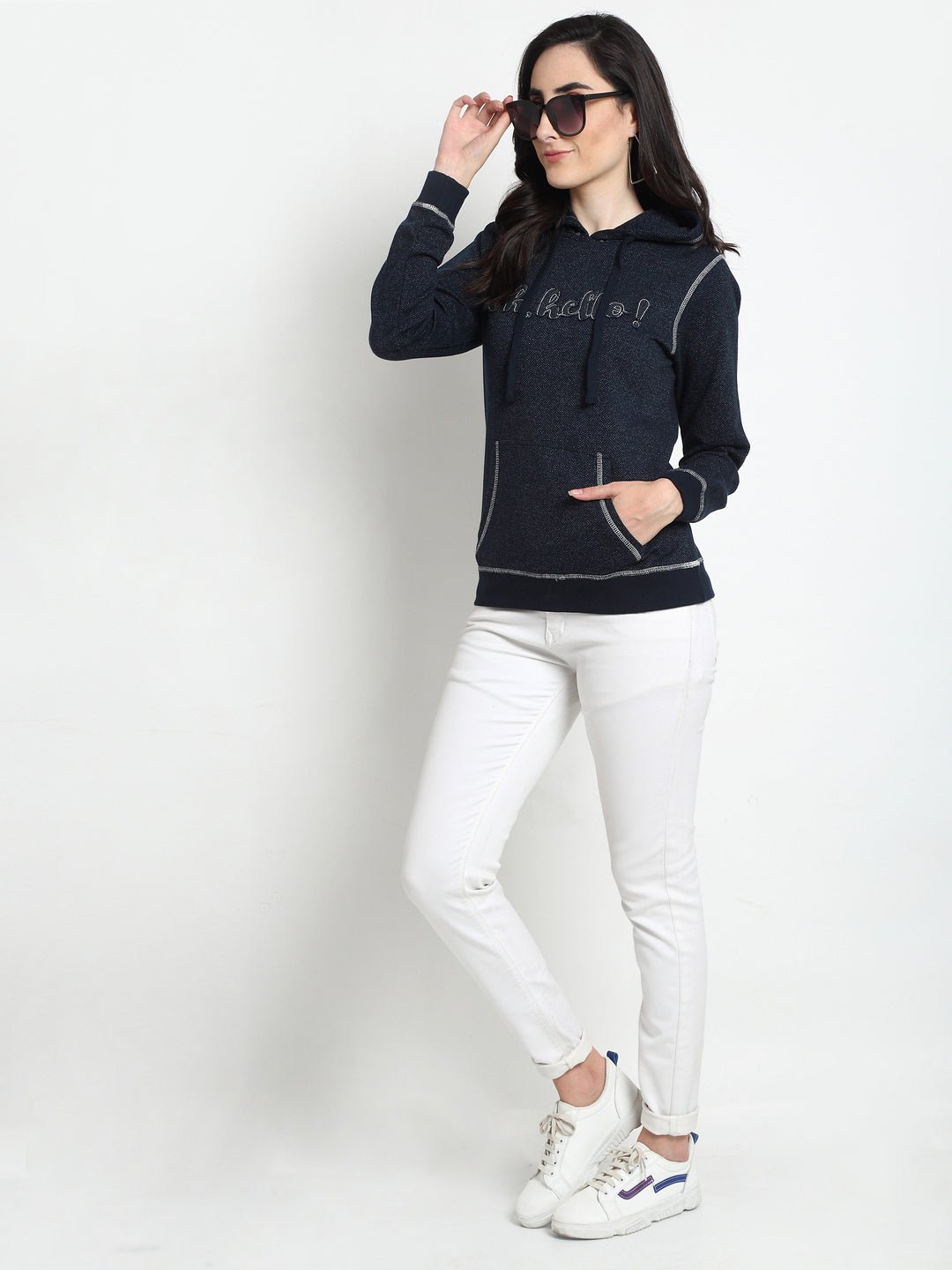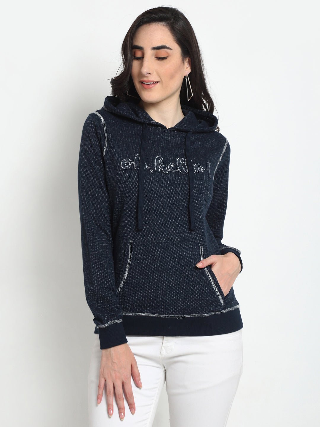 Navyblue Typography Printed Hooded Sweatshirt Cyw424 1229