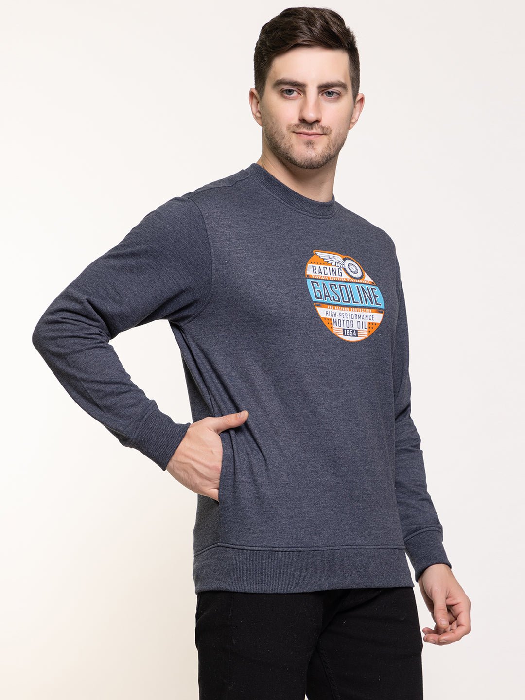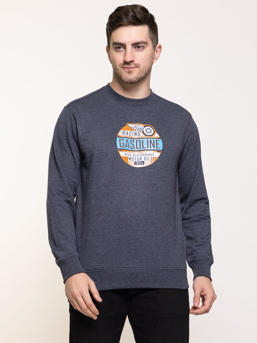 Navymelange Full Sleeve Fleece Printed Round Neck Sweatshirt Cy532 6486