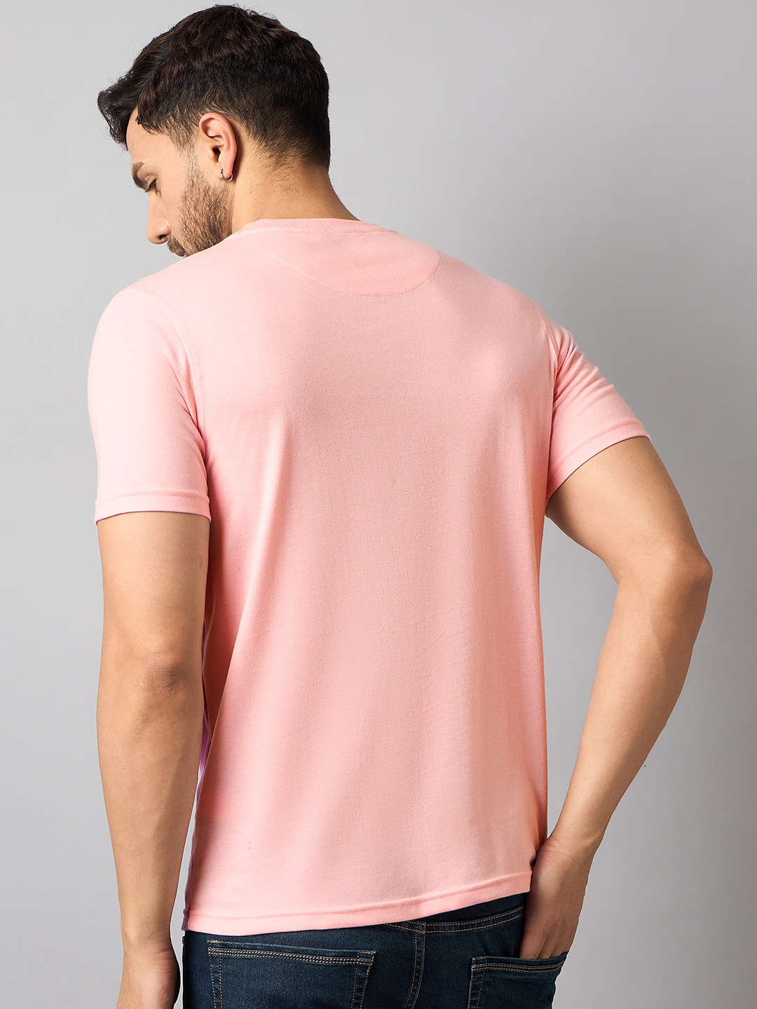 Men Soild Beige Half Sleeve Round Neck T Shirt