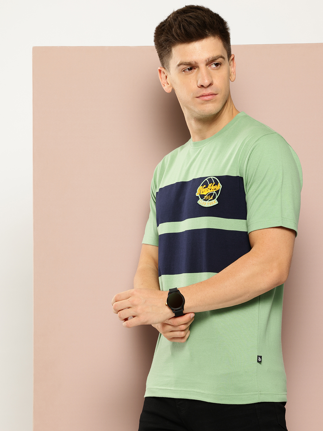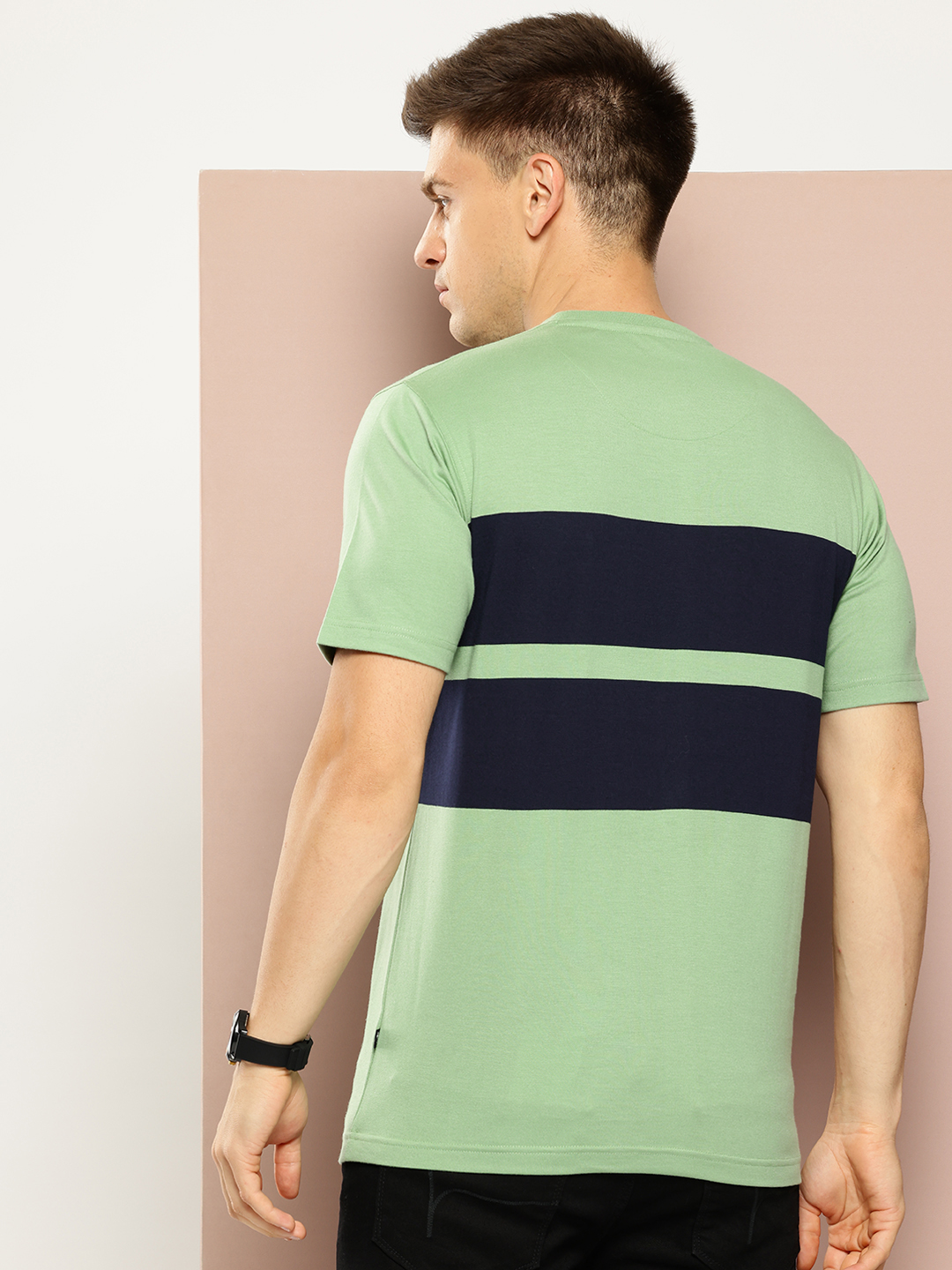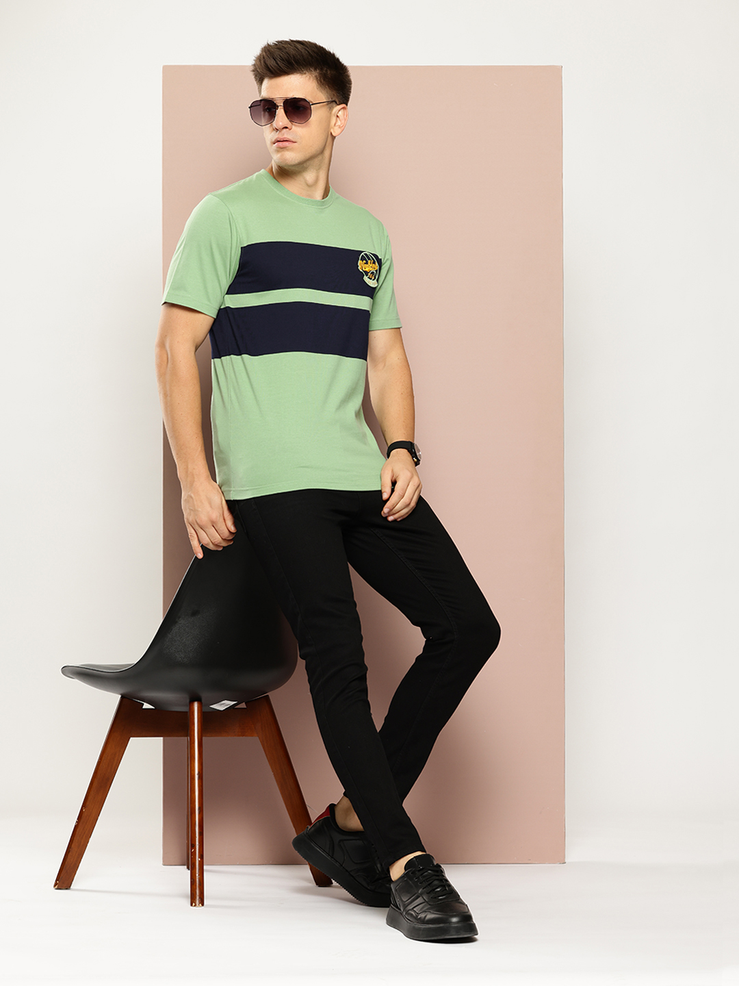 Men Horizontal Striped Light Green Half Sleeve Round Neck T Shirt