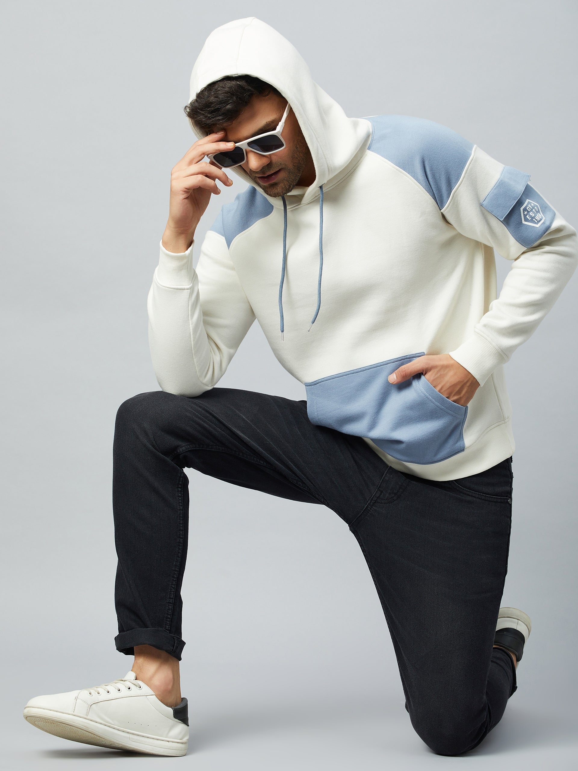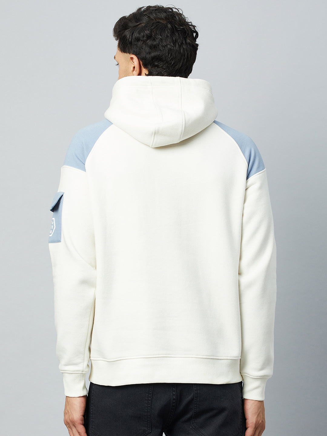 Off White Colorblocked Full Sleeve Hooded Sweatshirt 1658