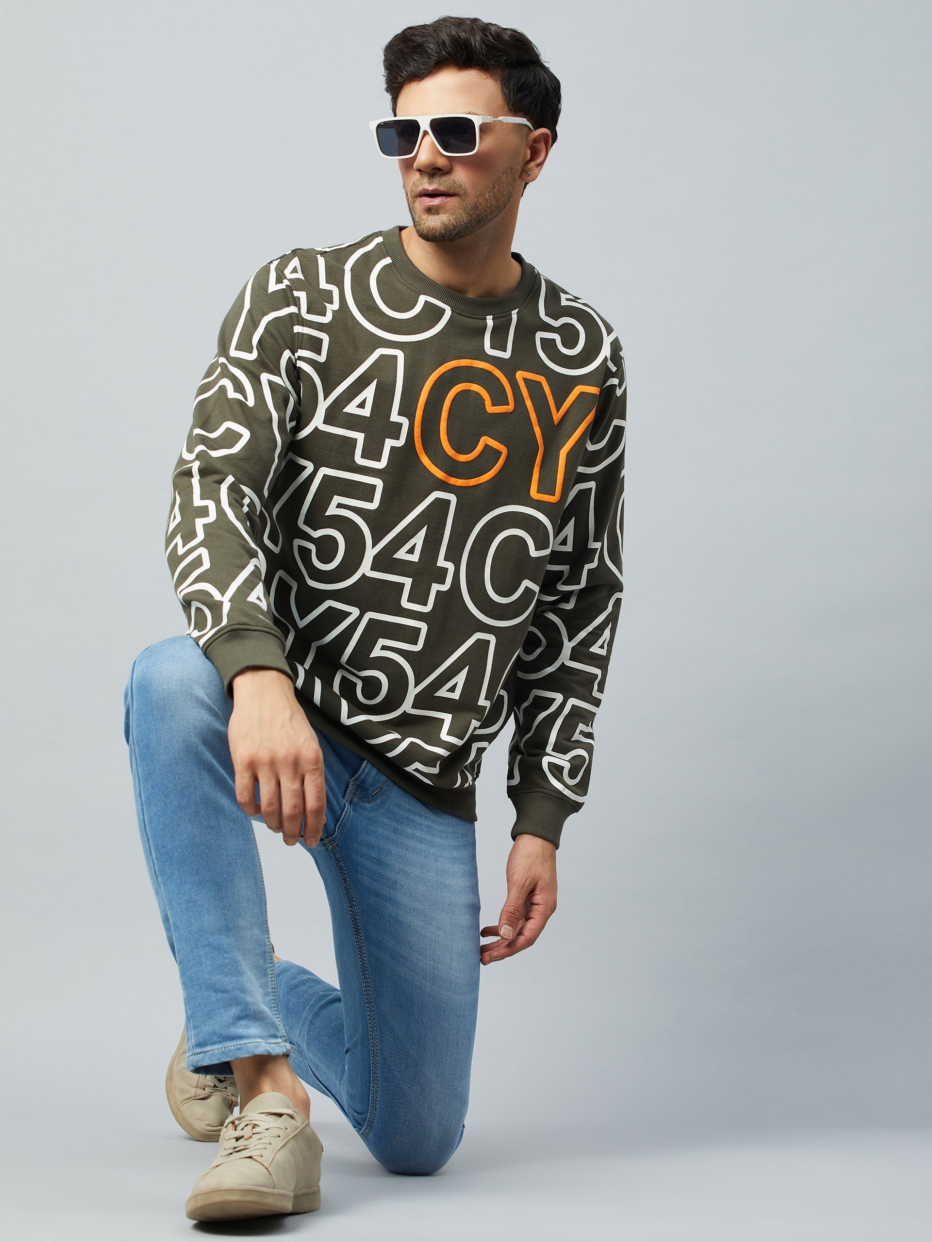 Olive Green Printed Full Sleeve Round Neck Sweatshirt 3240
