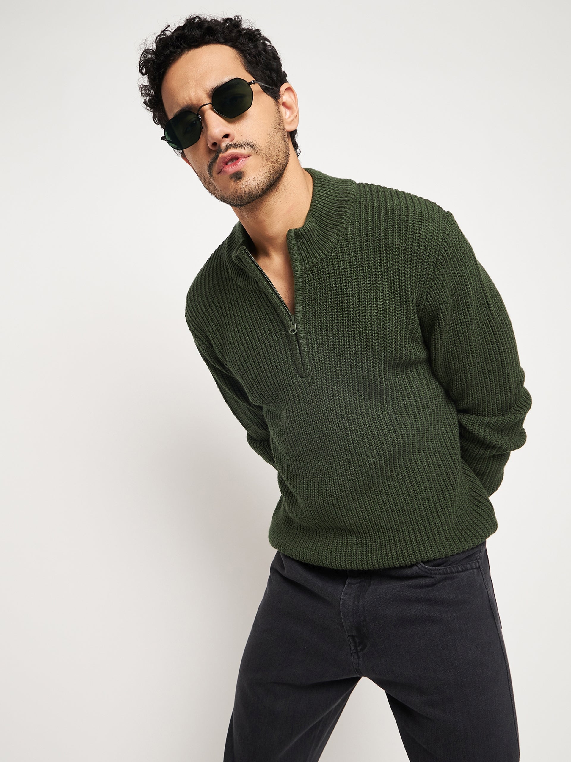 Olive Mock Neck Sweater 8702