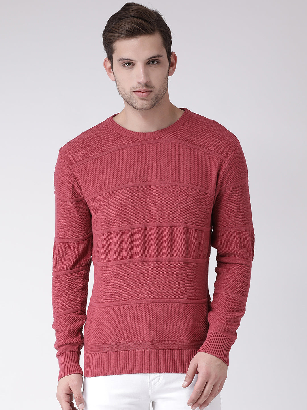 Beige Full Sleeve Solid Round Neck Sweater 3826