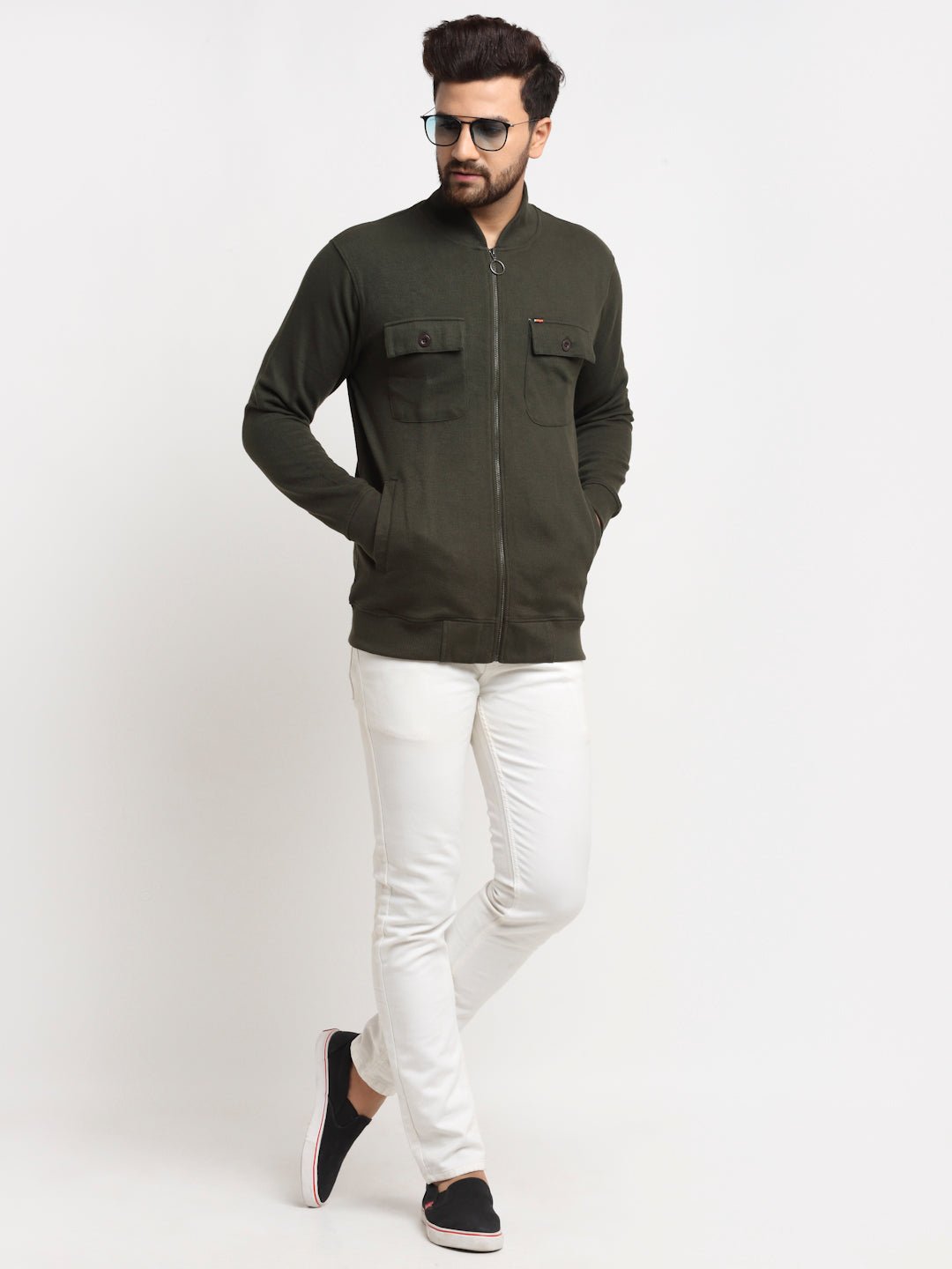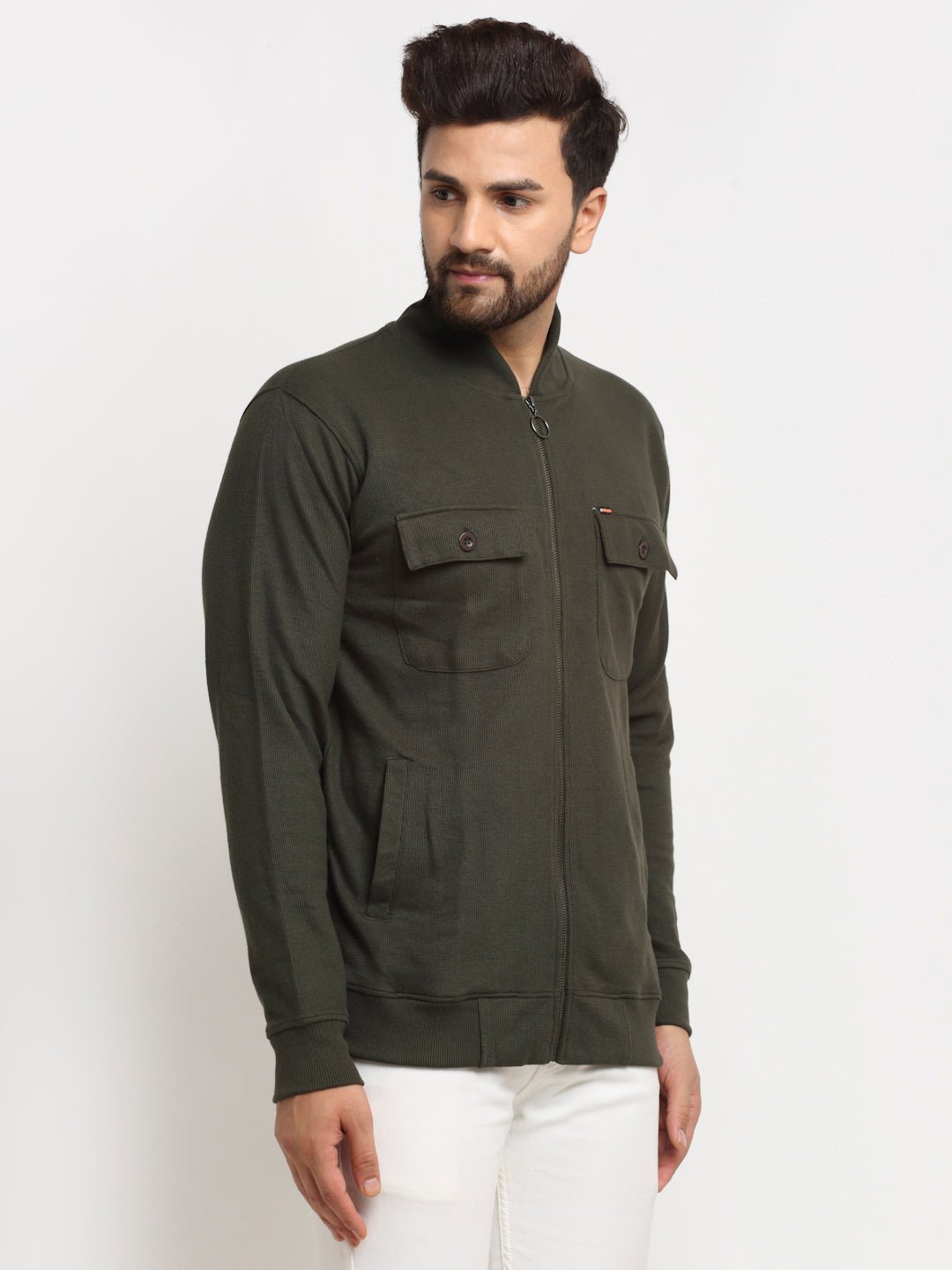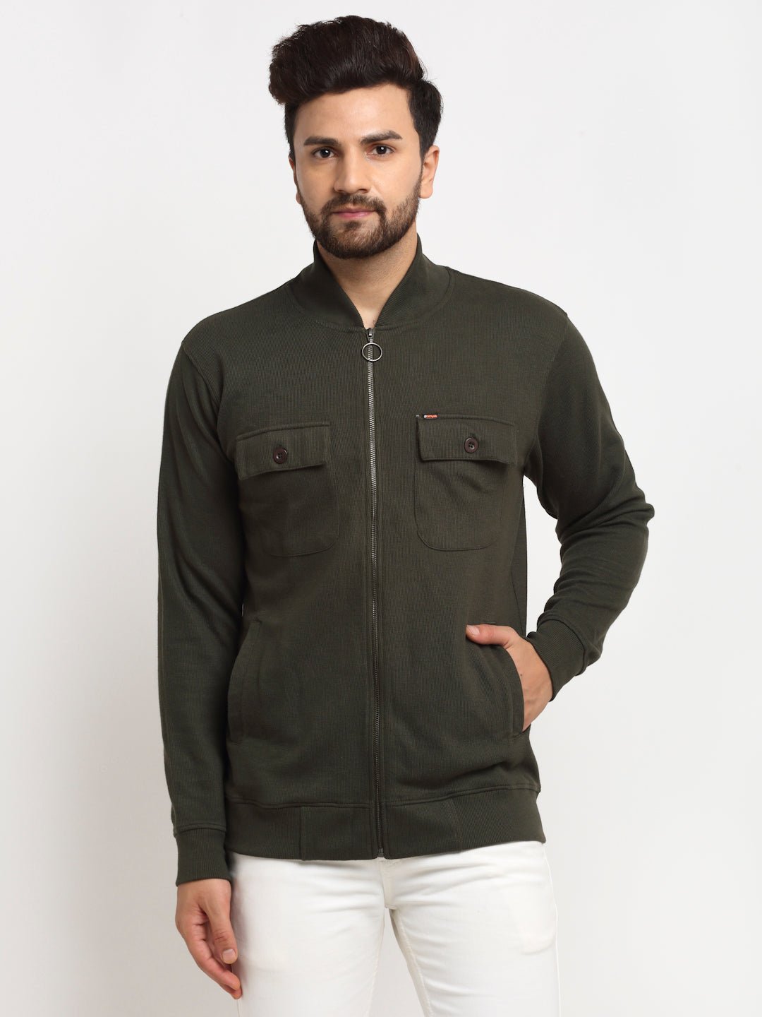 Olive Green Solid Full Sleeve Mock Neck Sweatshirt 3388