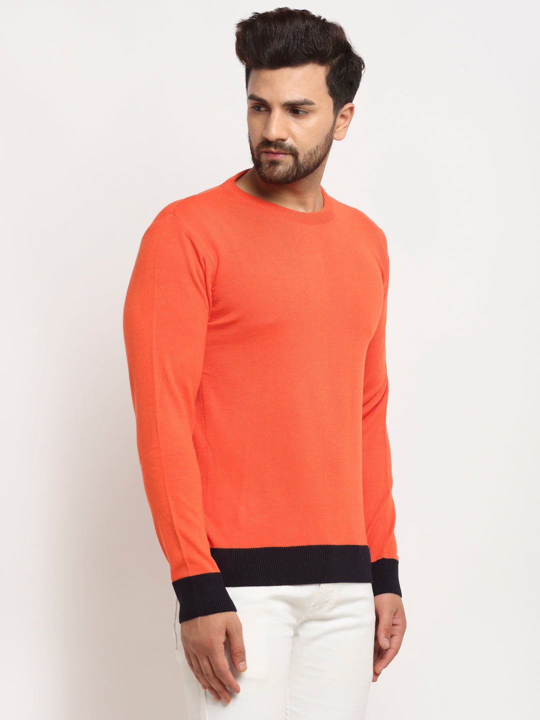 Orange Colourblocked Round Neck Sweater Cyc1202 8932