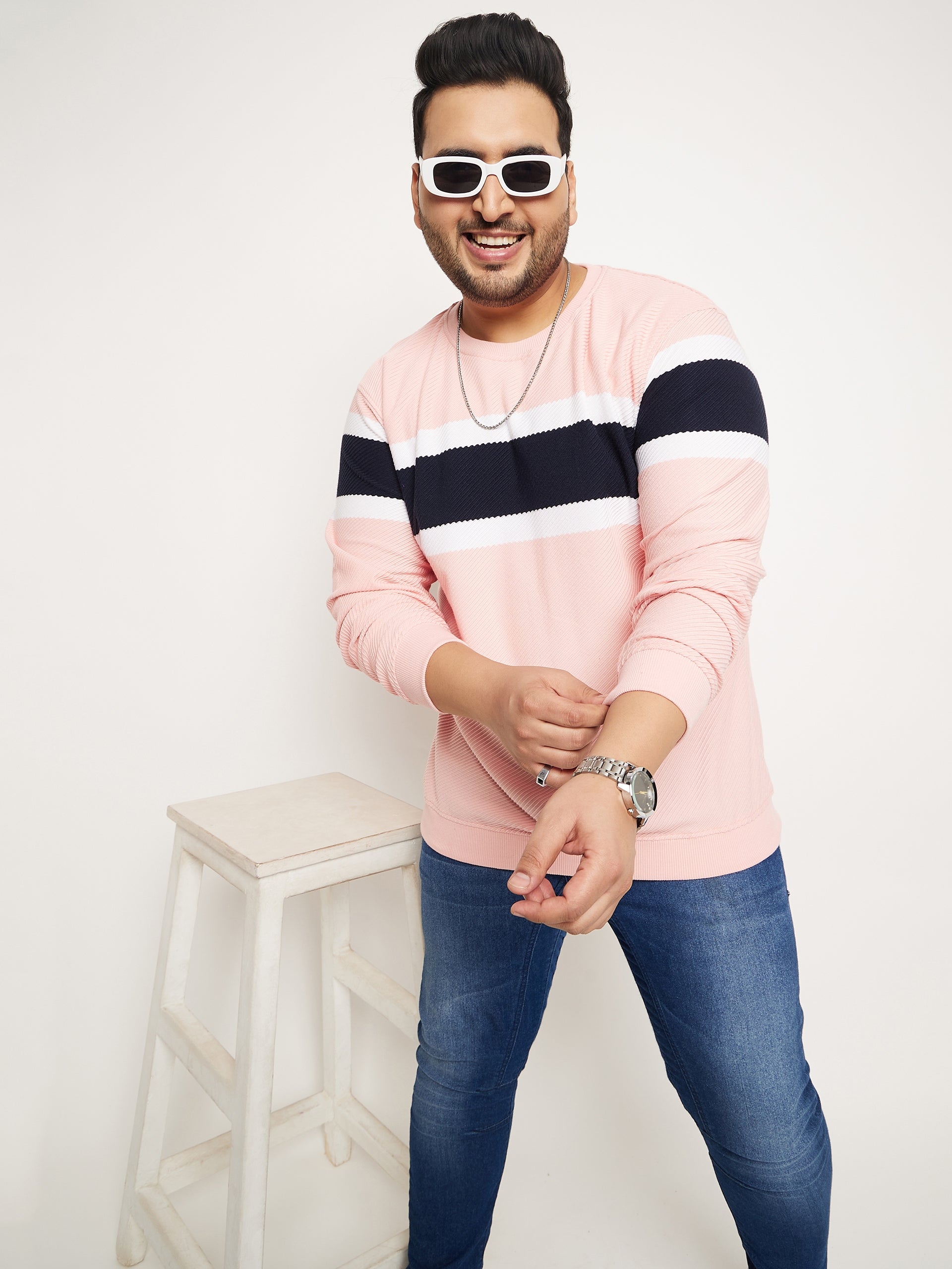 Brown Striped Full Sleeve Round Neck Plus Size Sweatshirt 4128