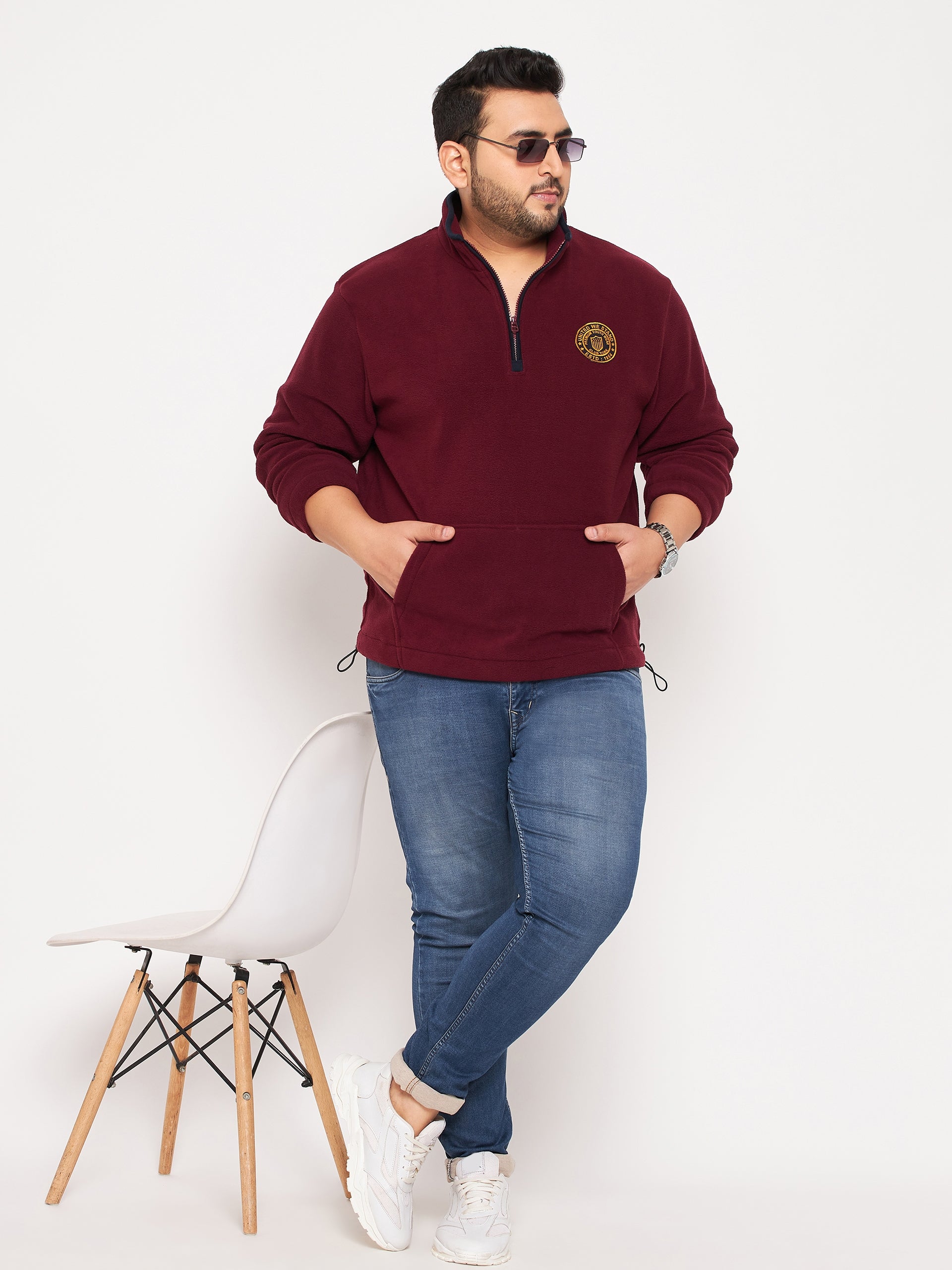 Wine Solid Full Sleeve Mock Neck Plus Size Sweatshirt 1421