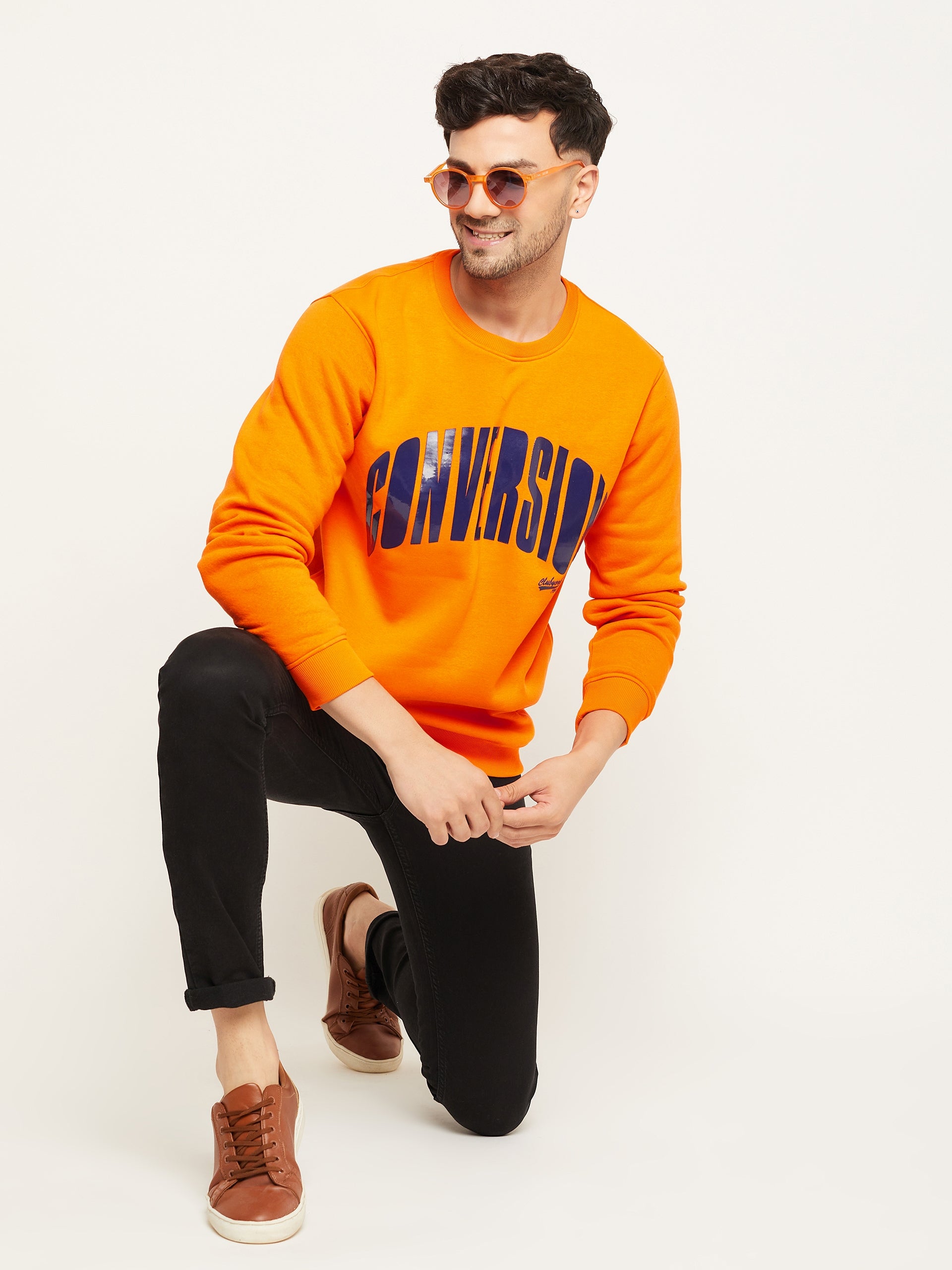 Orange Printed Full Sleeve Round Neck Sweatshirt 7801