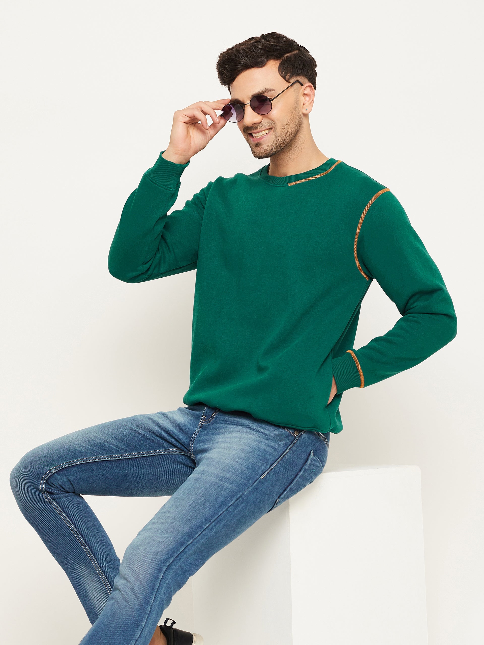 Pista Green Solid Full Sleeve Round Neck Sweatshirt 2804