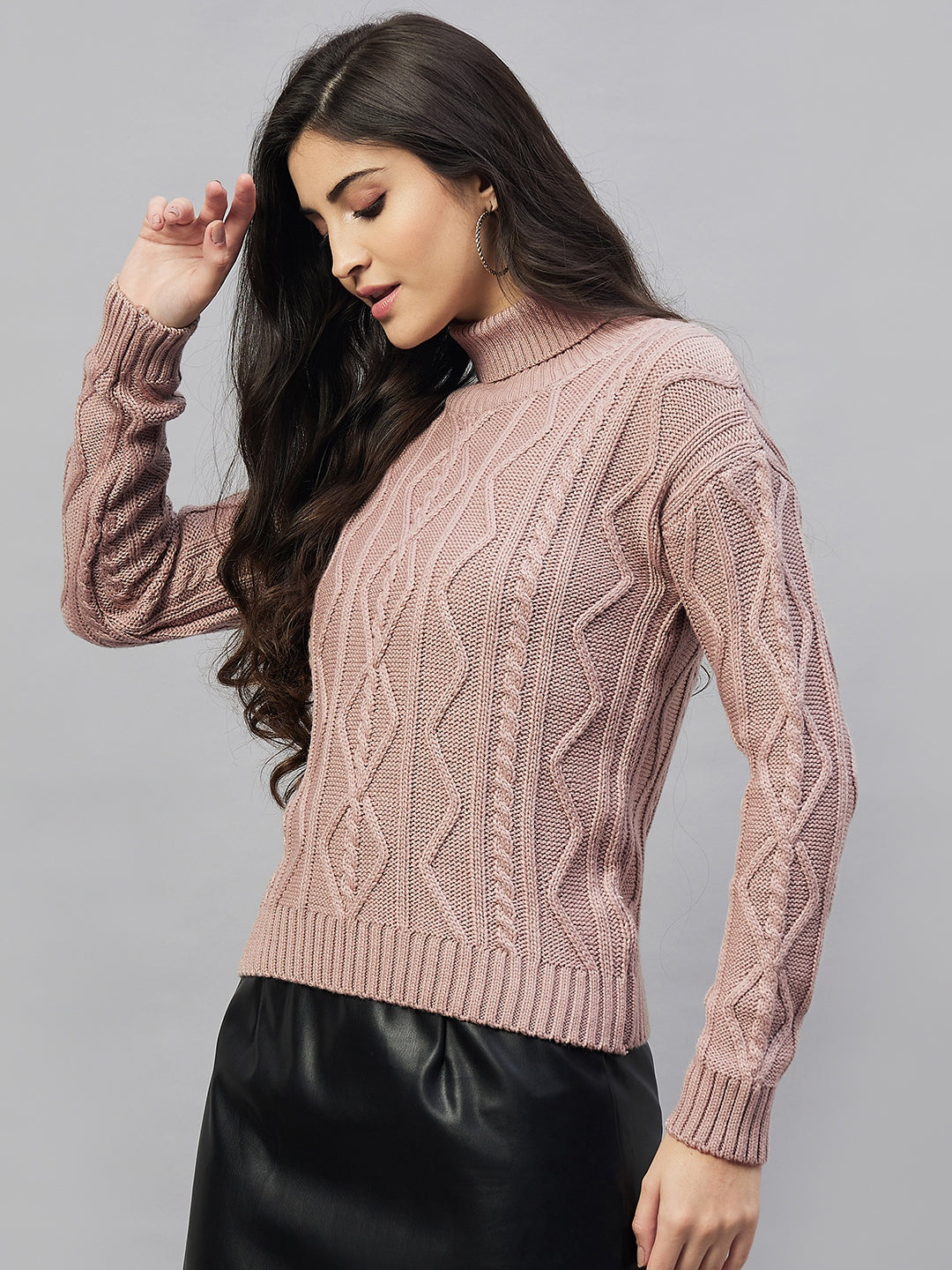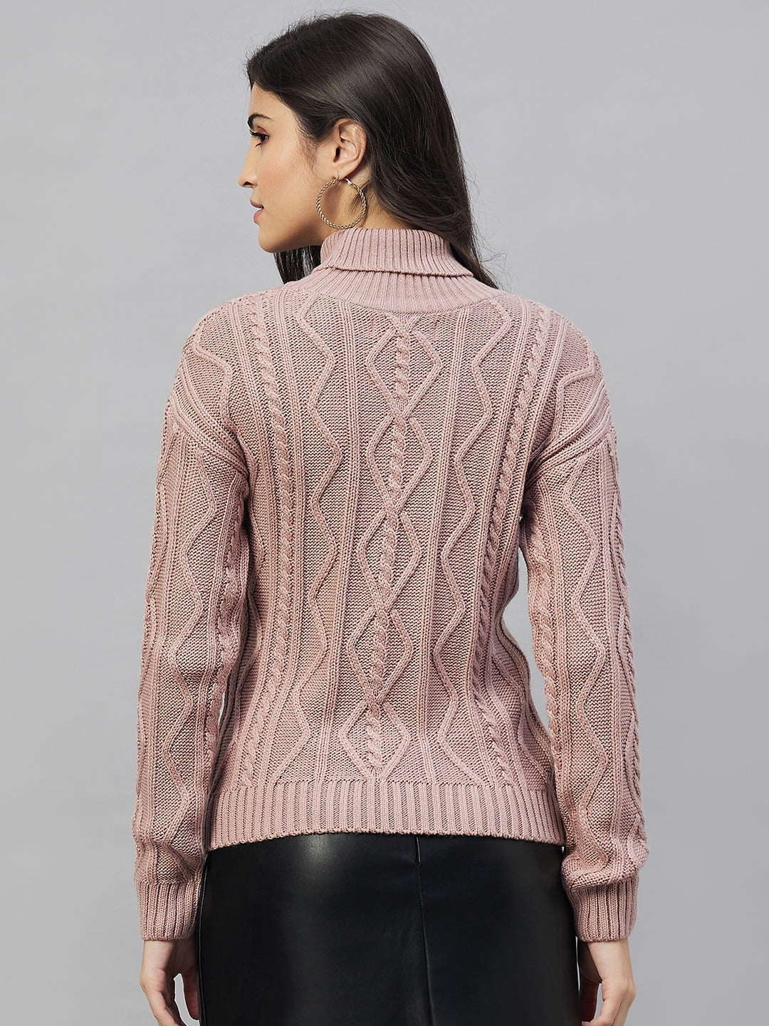 Pink Solid V-Neck Cardigan With Front Pocket 6056